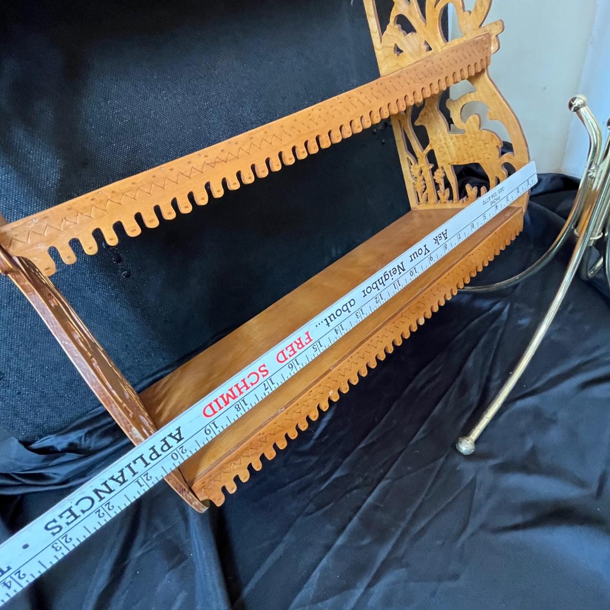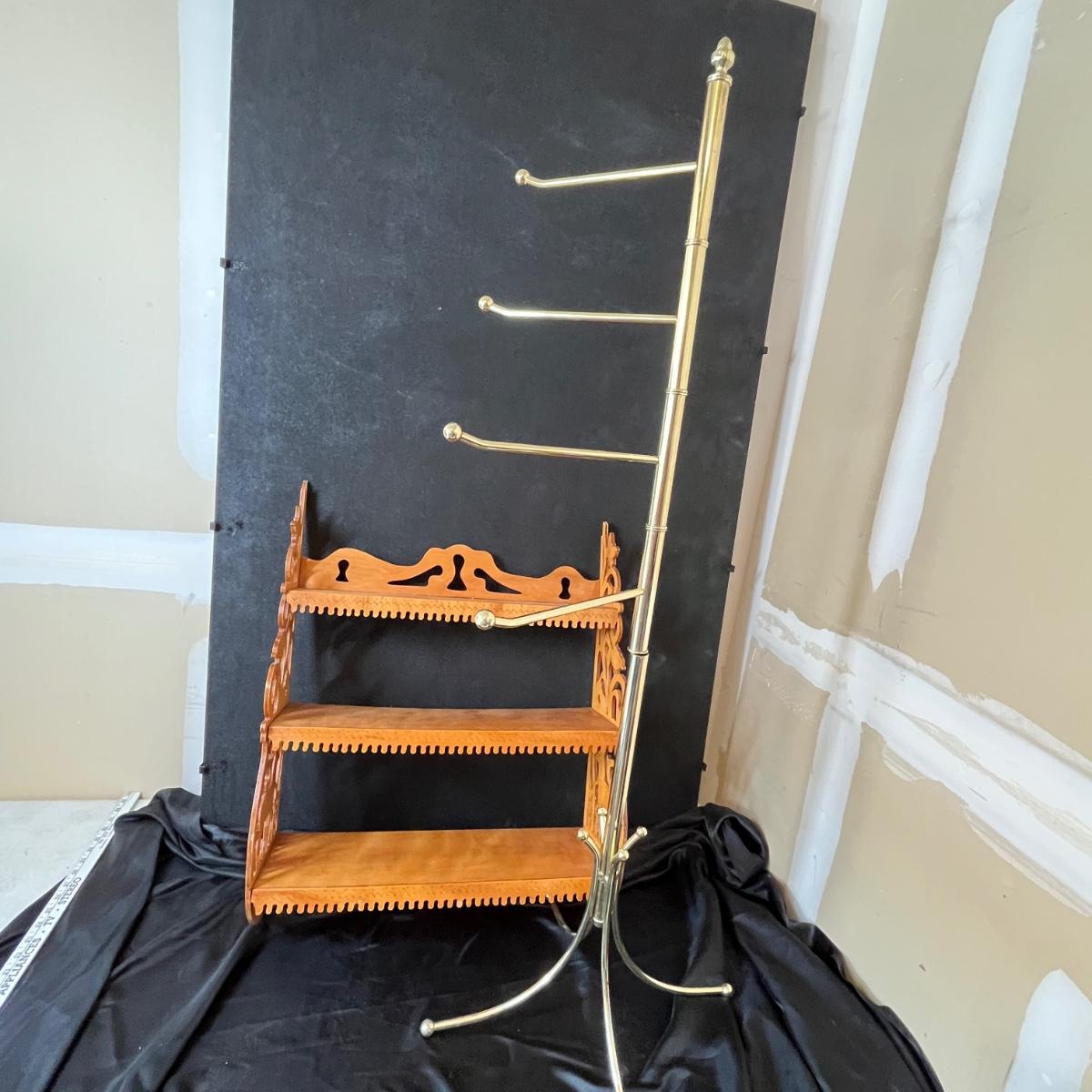 Brass towel rack & wood shelf