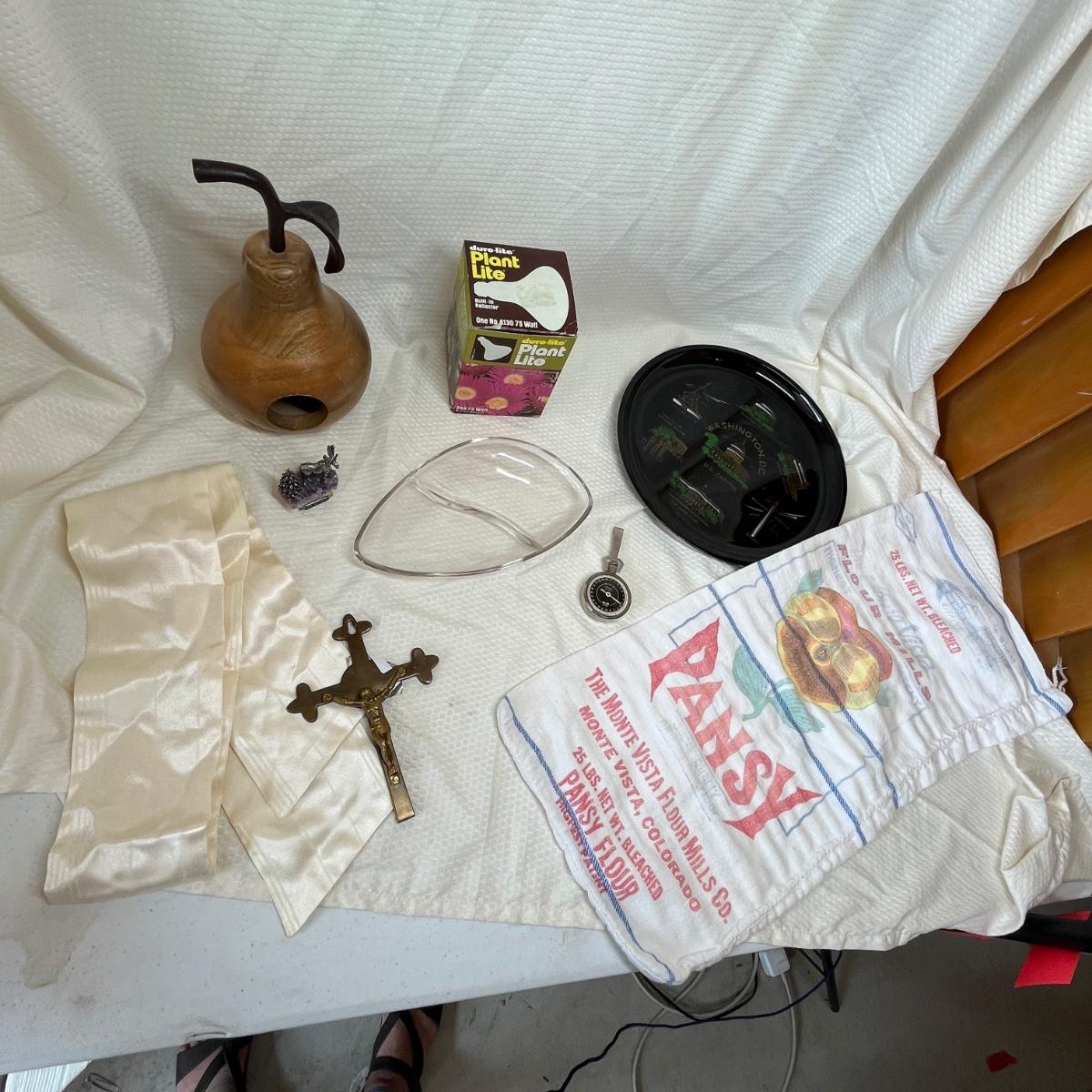 8. Sizes are approximate, you can estimate as our lot number signs are 3.5" long. Also we use an 18" & 36" measuring stick.  We try on certain things to do actual measurements. No guarantees on actual sizes, we try our best!