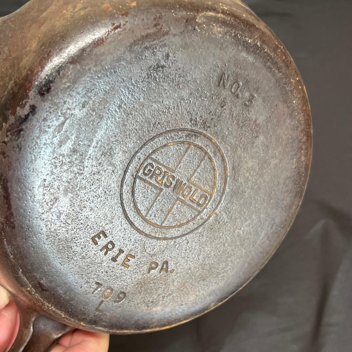 The cast iron (and there is a LOT more at the end of the auction) all needs cleaned and seasoned. Great pieces!