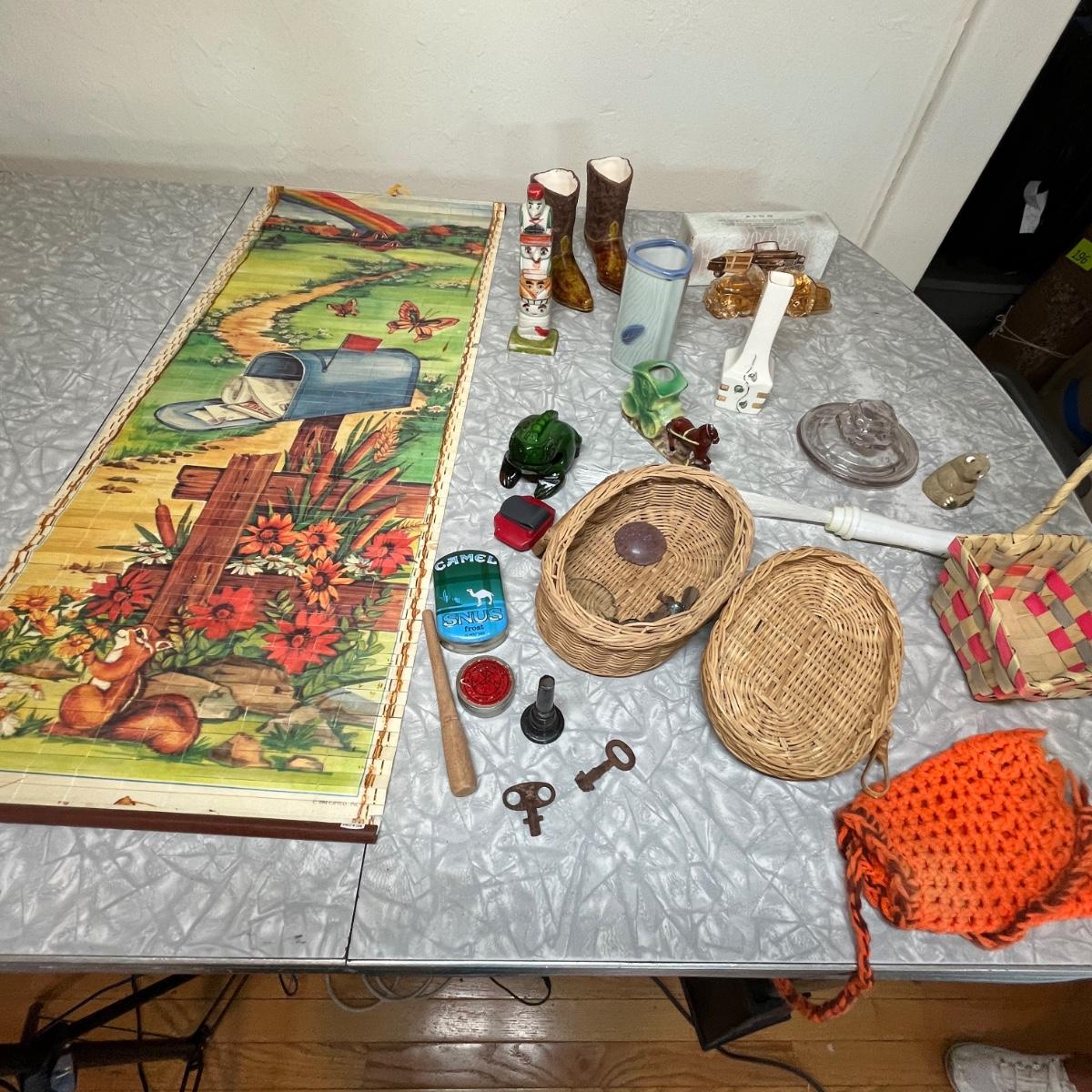 8. Sizes are approximate, you can estimate as our lot number signs are 3.5" long. Also we use an 18" & 36" measuring stick.  We try on certain things to do actual measurements. No guarantees on actual sizes, we try our best!