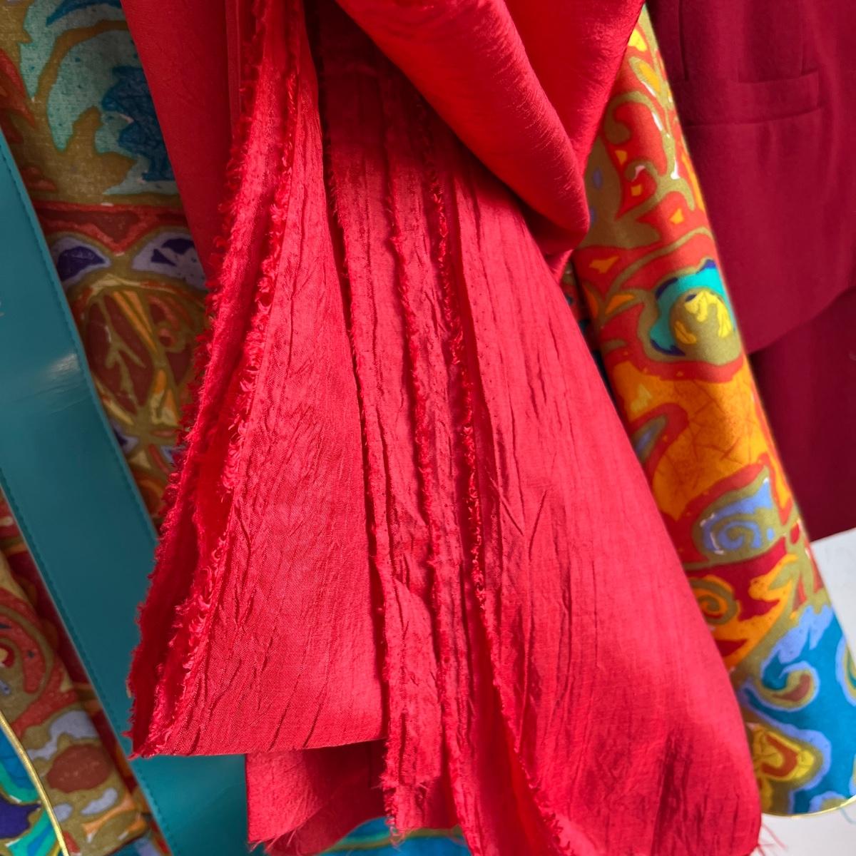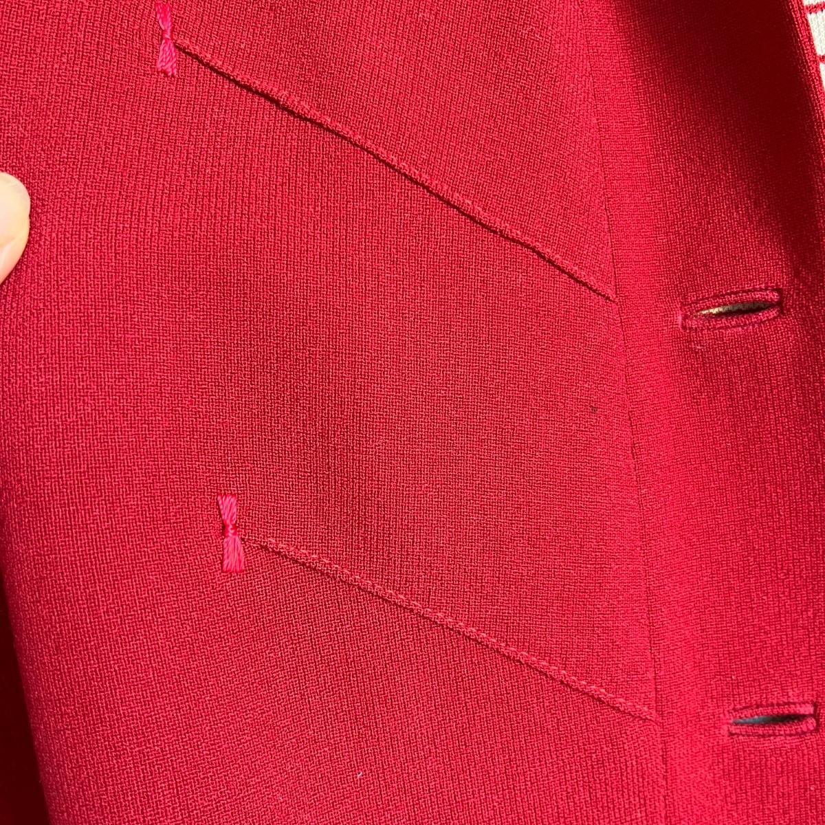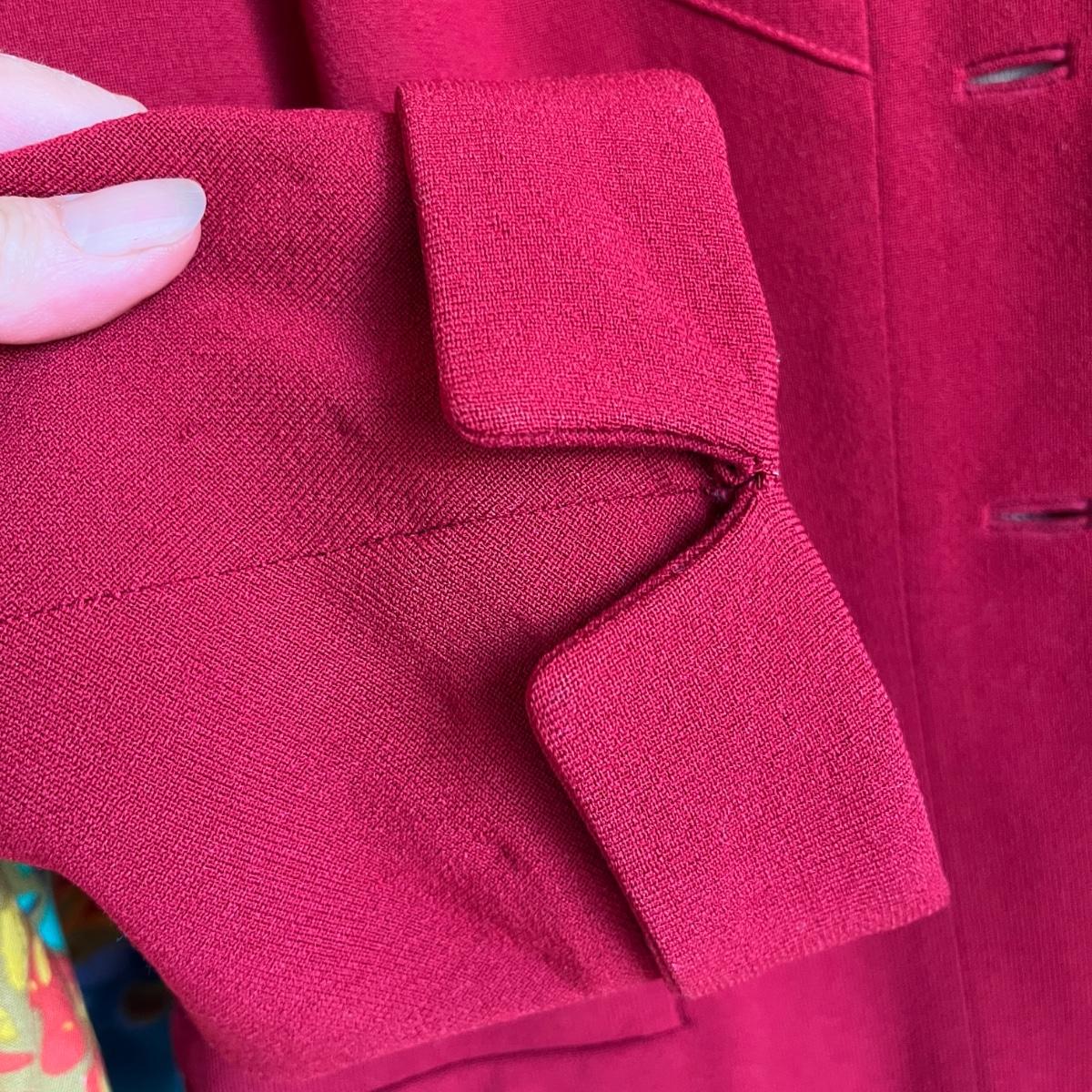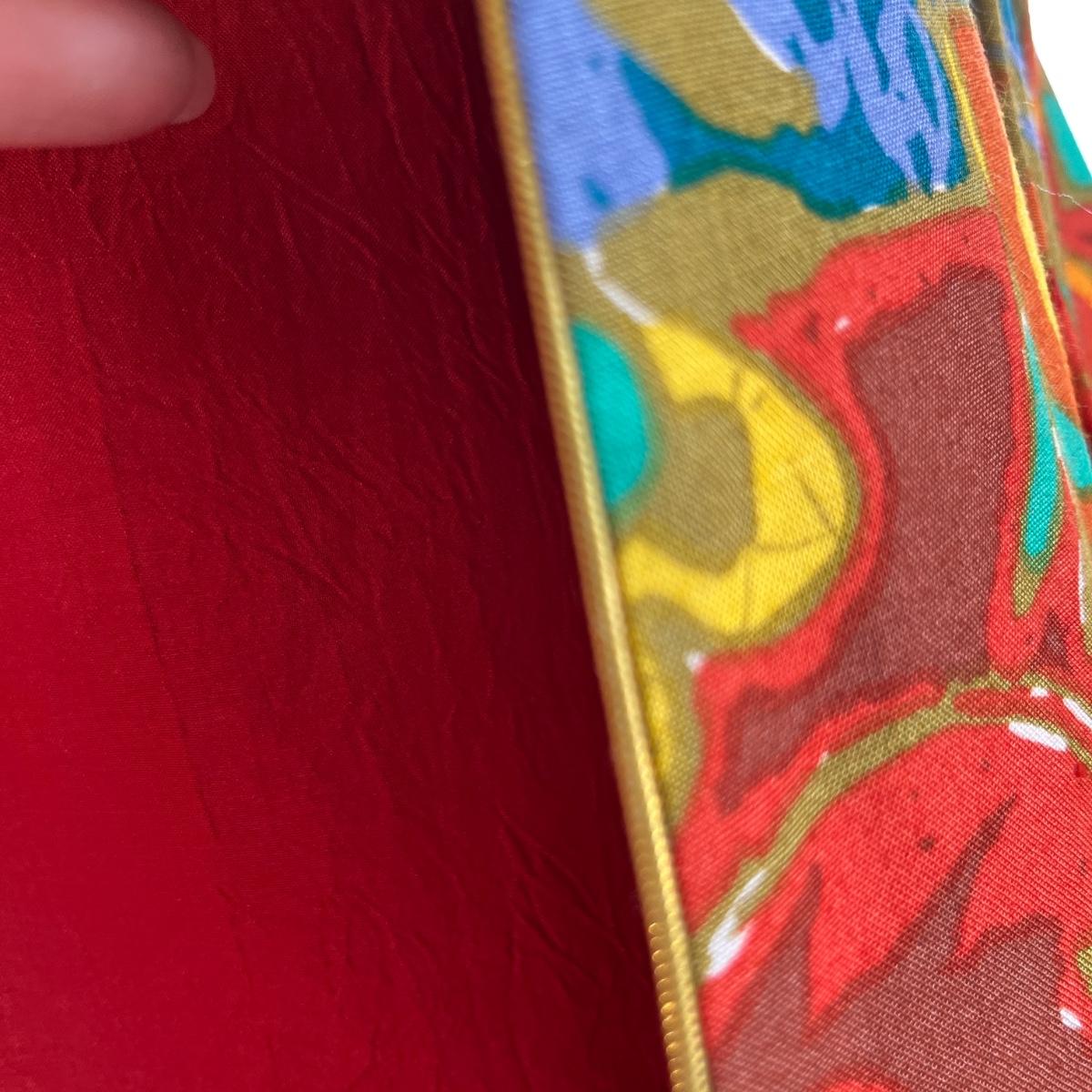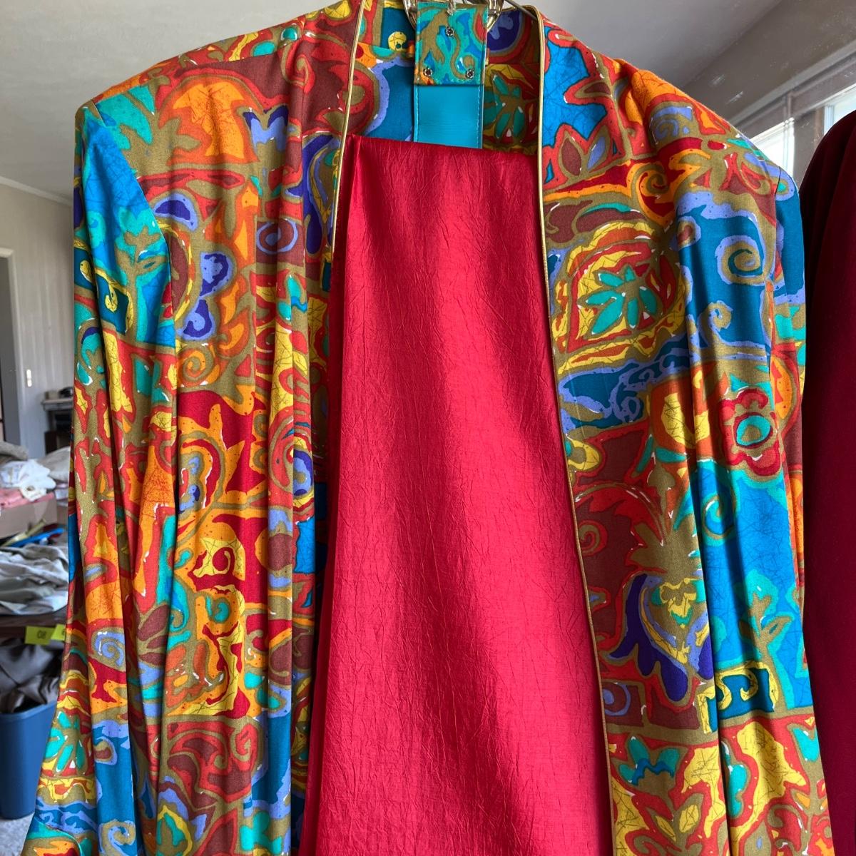 Colorful jacket has red fabric with it