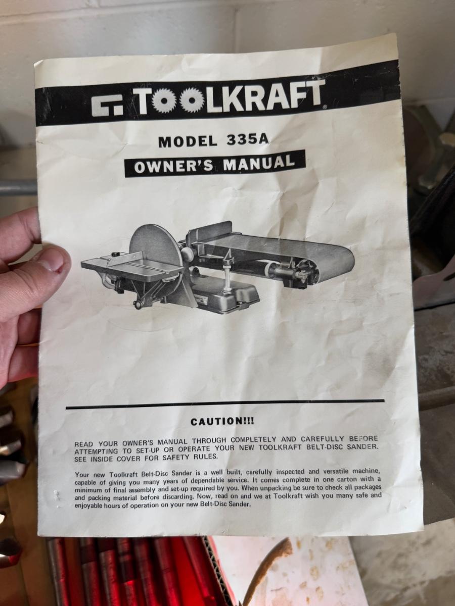 ToolKraft Model 335A Grinder Sander w/metal cabinet below