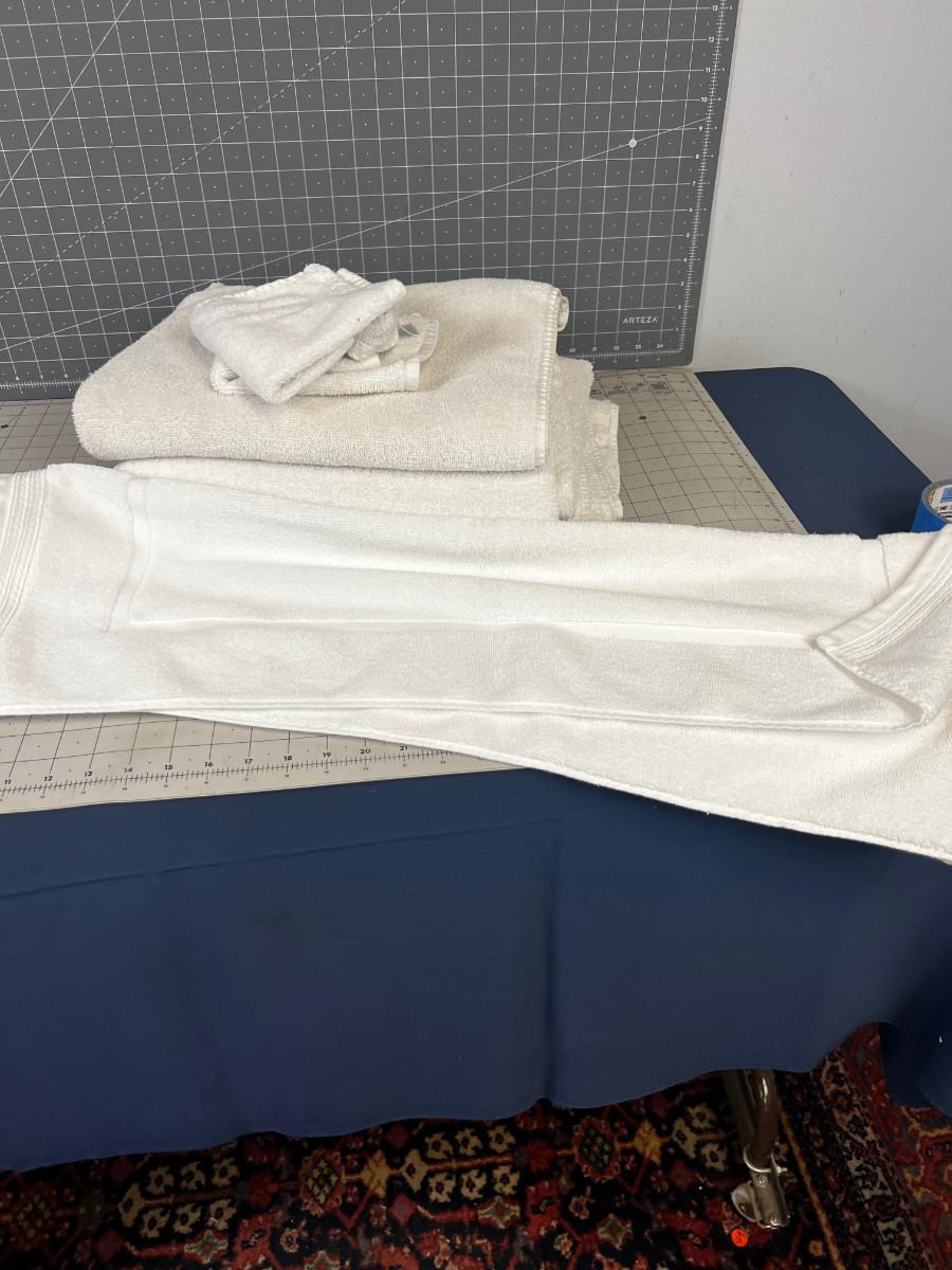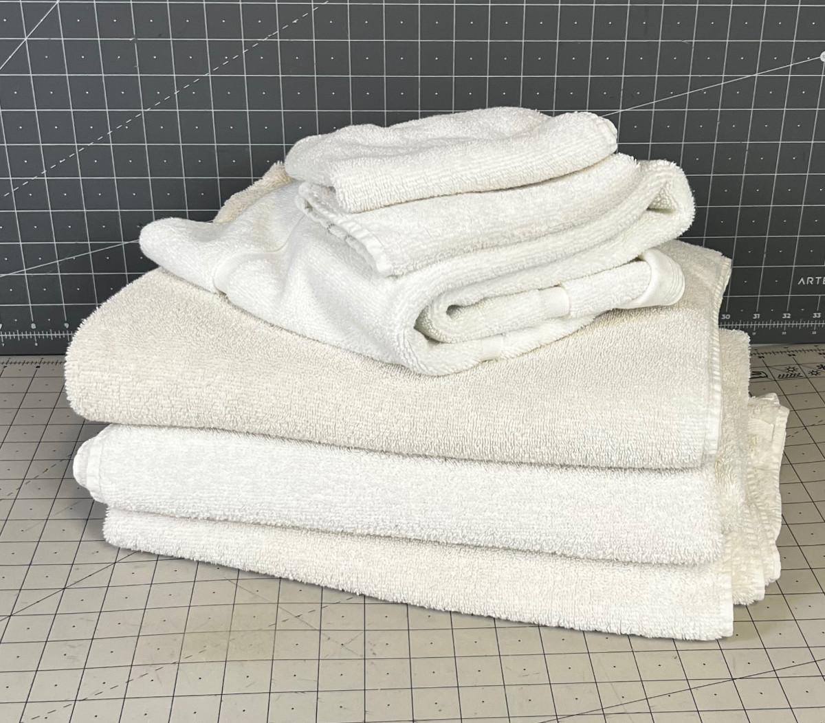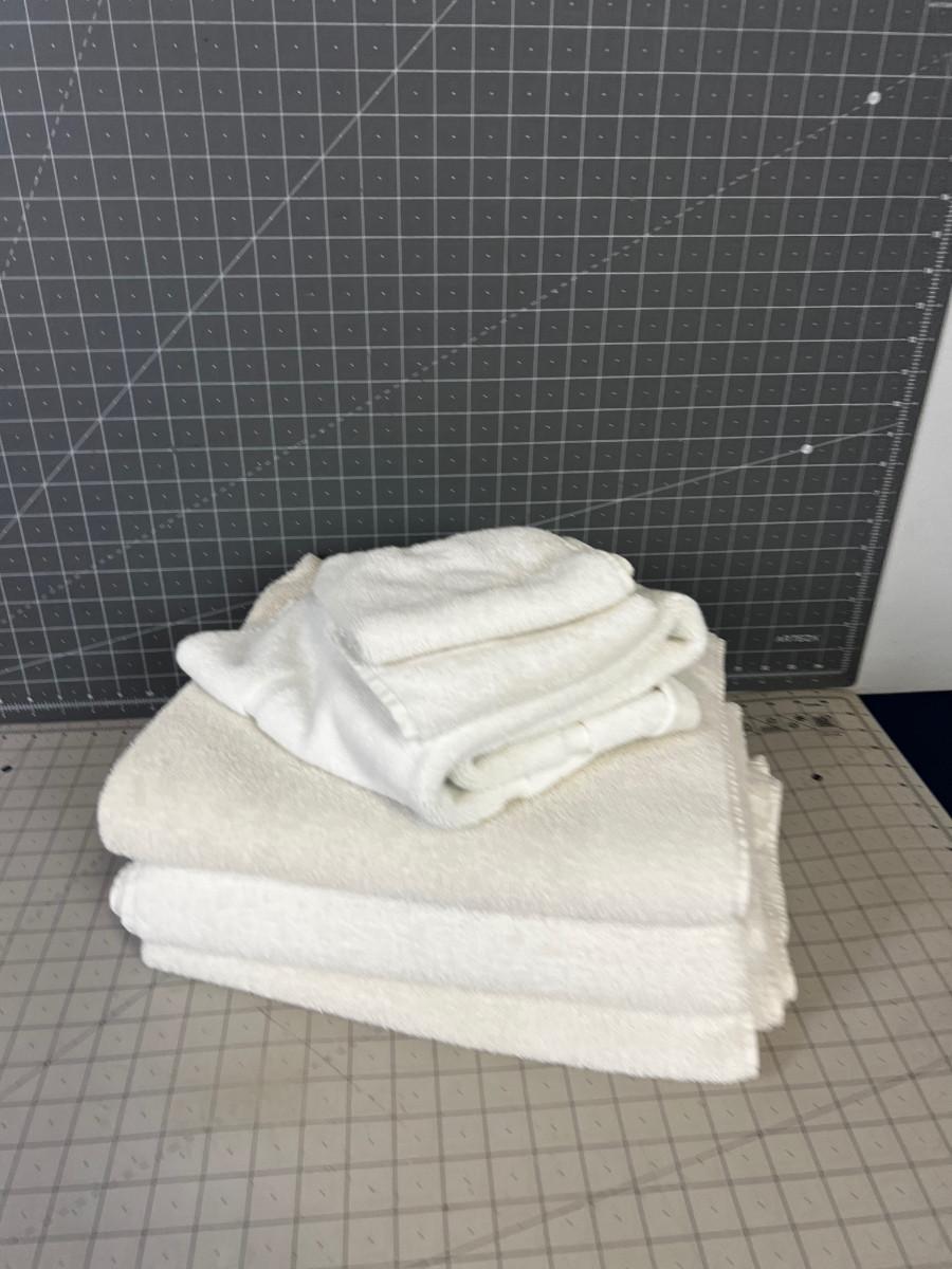 Used. White. 3 Bath 2 wash Clothe and 1 Bath Mat