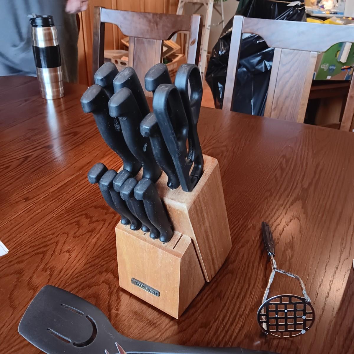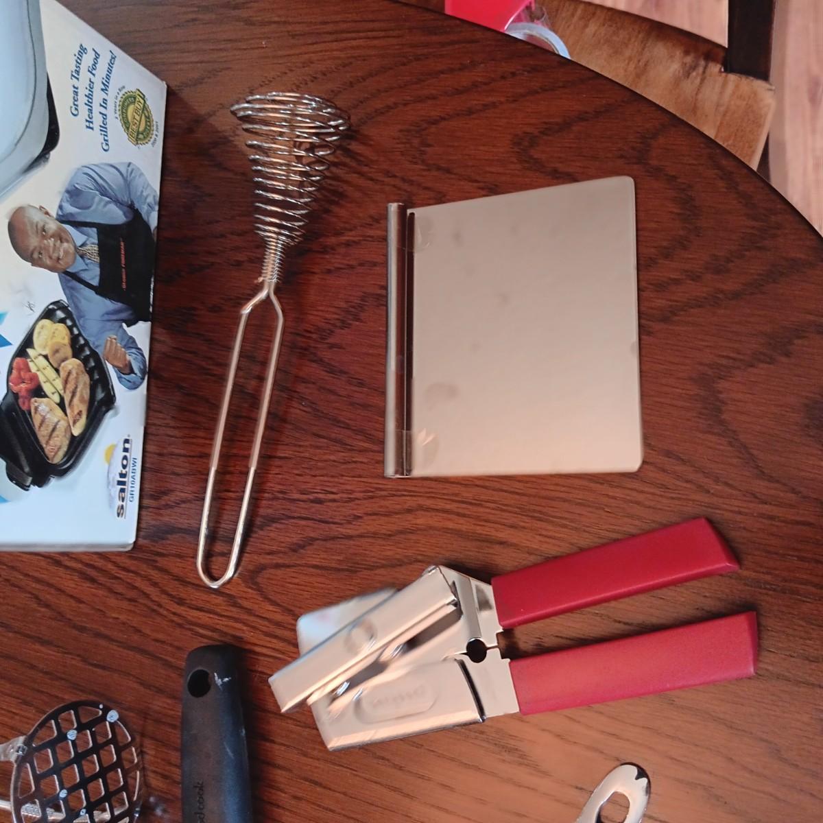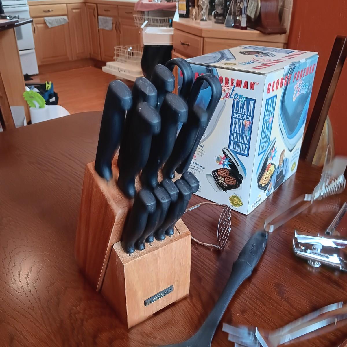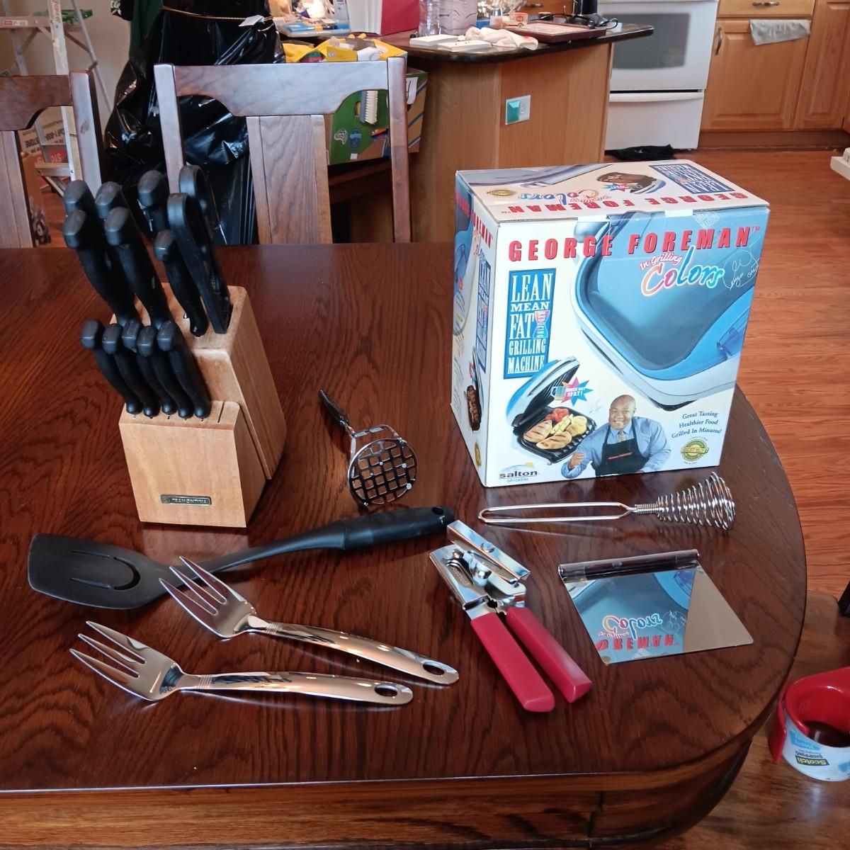 TRAMONTINA CUTLERY SET, NEW GEORGE FOREMAN GRILL AND SOME KITCHEN UTENSILS