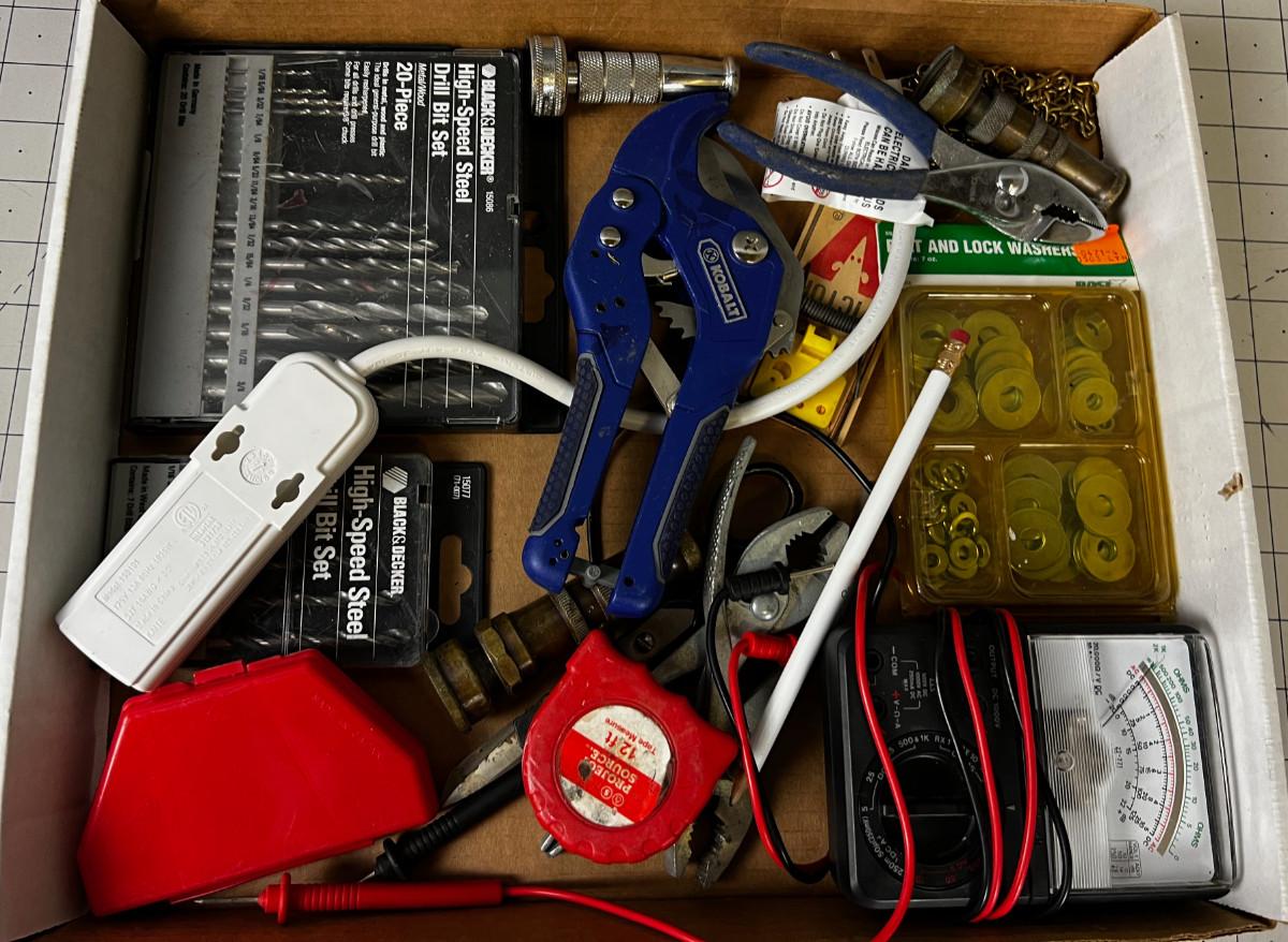 TRAY 4: Pipe Cutter, Drill Bits, Pilers, Home Meter