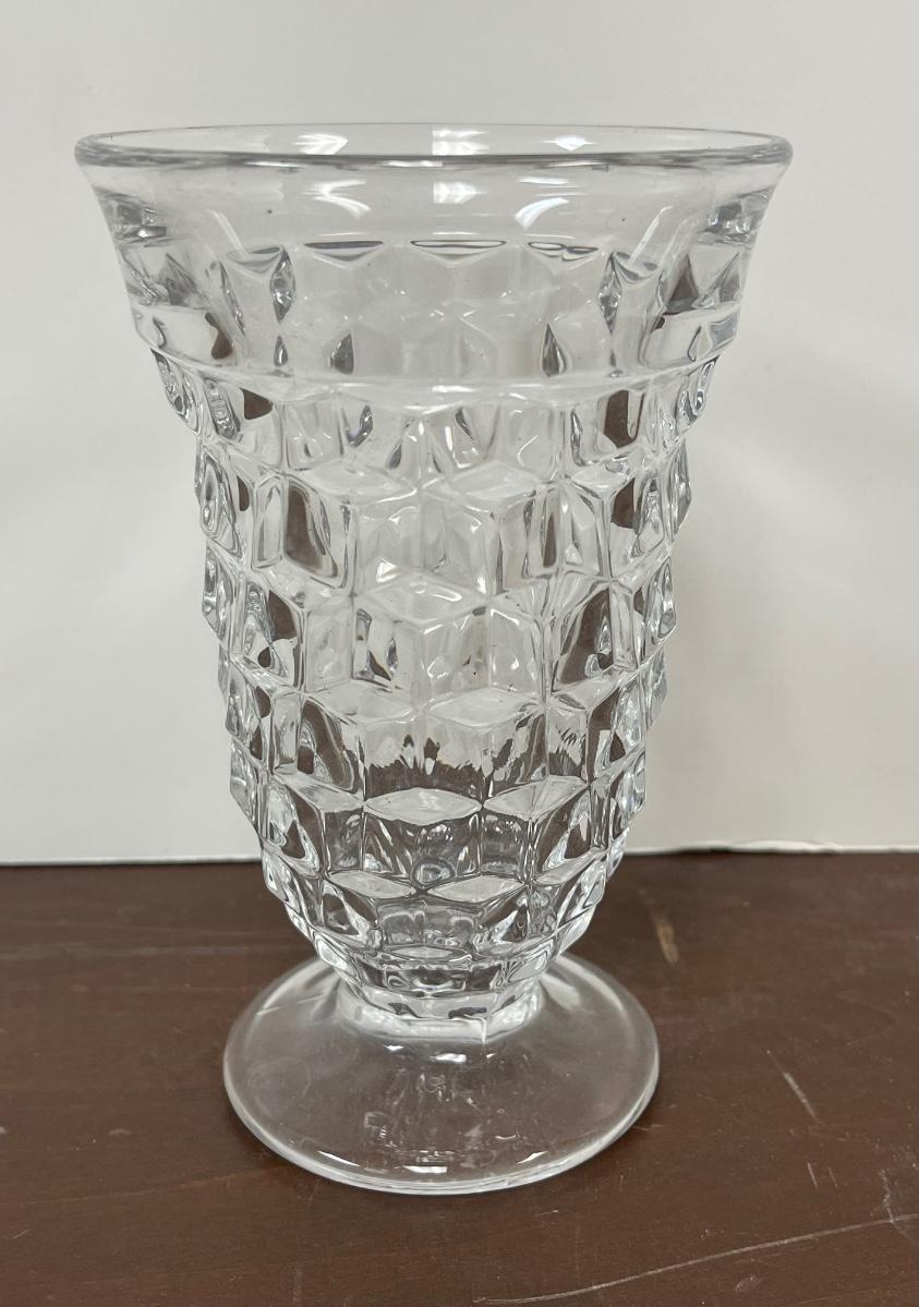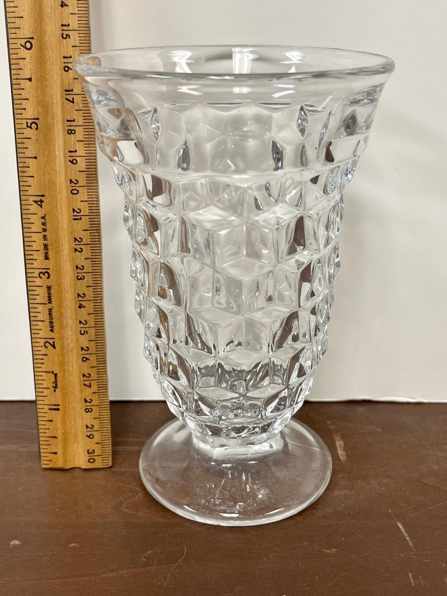 Vintage Pressed Glass Fluted Beehive Fostoria American Footed Flower Vase. In good condition. Almost 6" size.