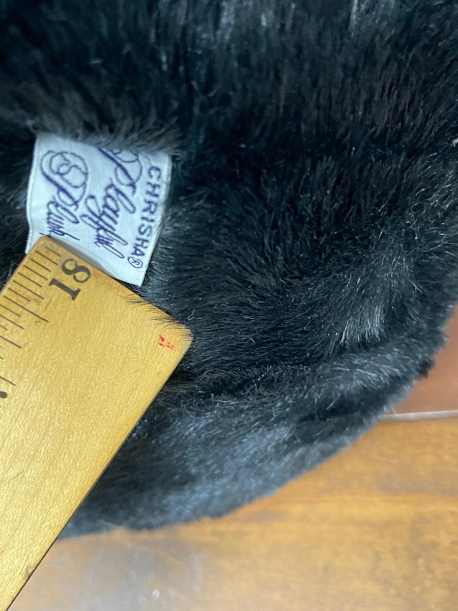 Vintage Retro Chrisha Playful Plush Black Teddy Bear Stuffed Animal. In good condition. May be dusty and have light fade from display.