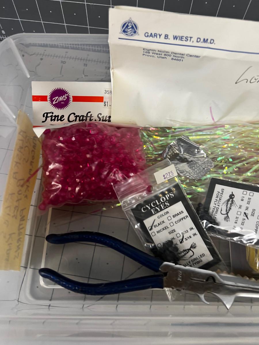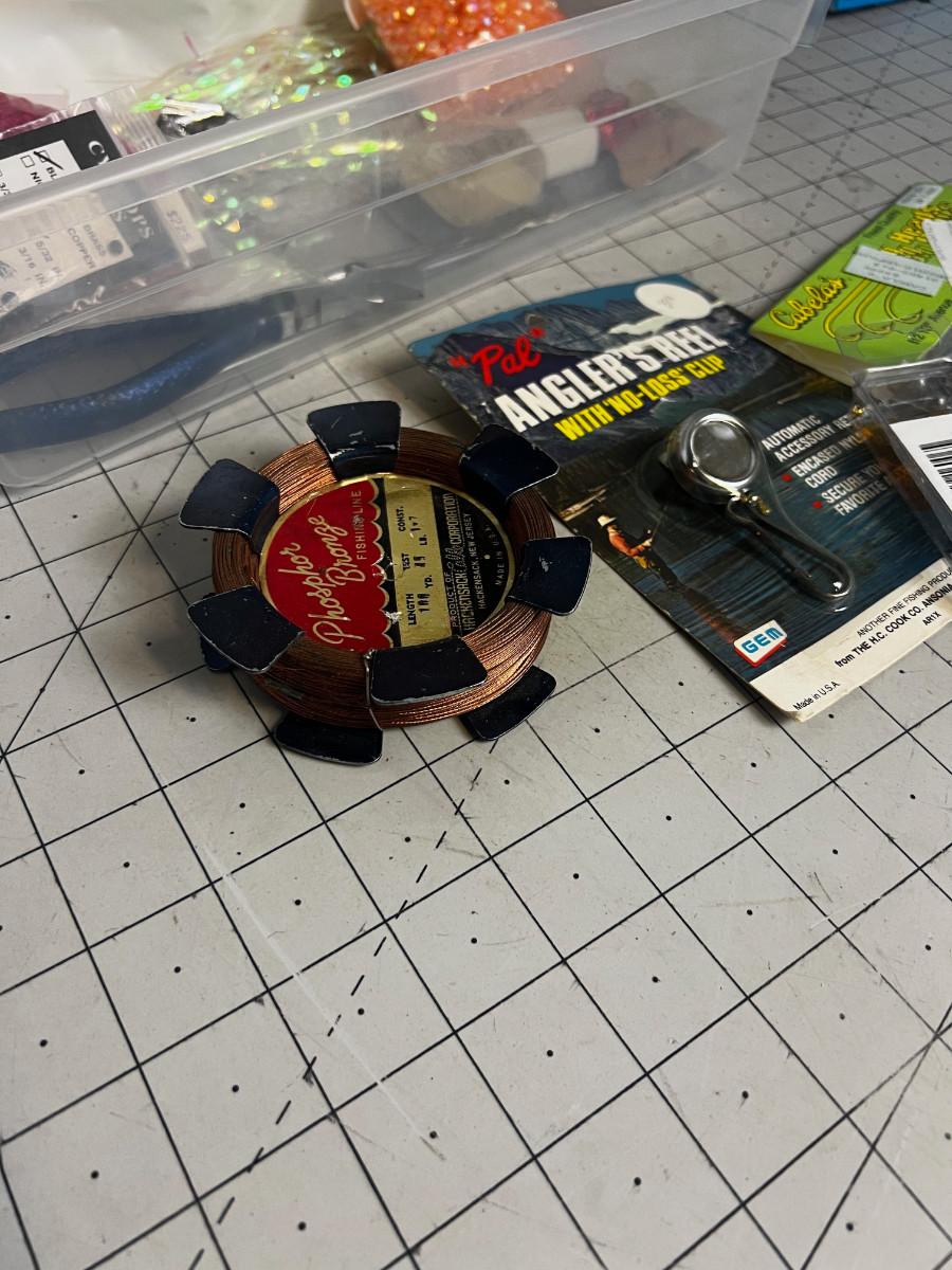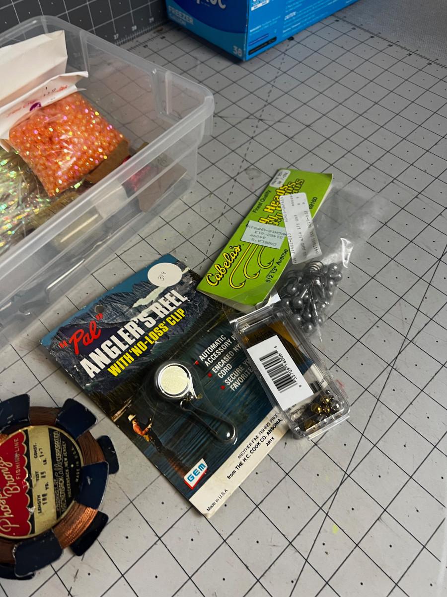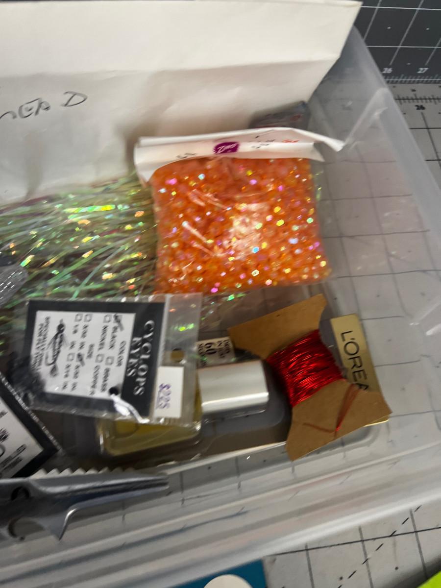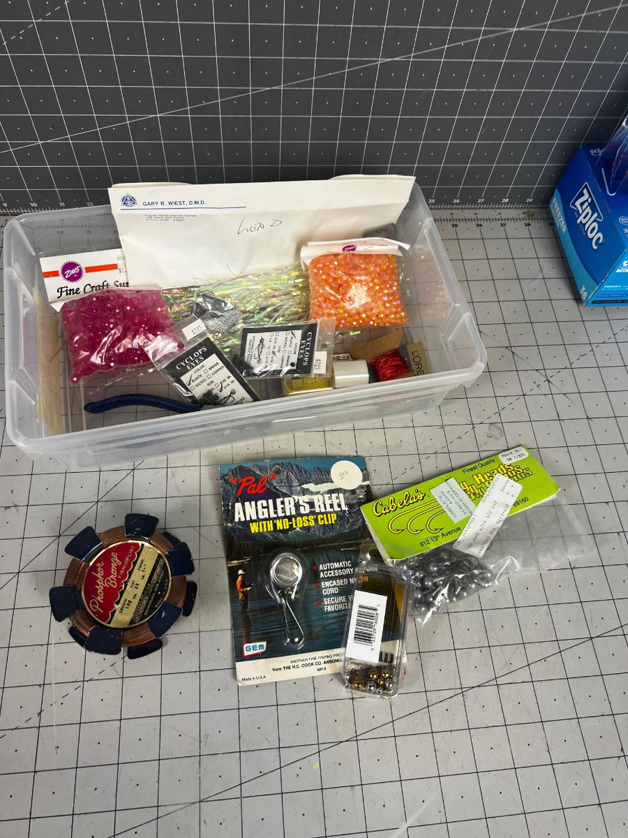 Tub of Jig Heads, Copper Line, Beads - Misc. Fly tying plus the tub.