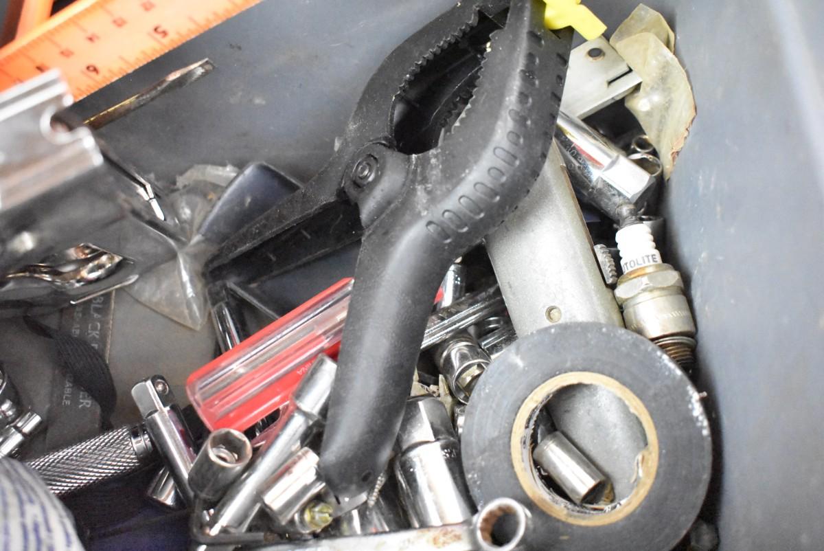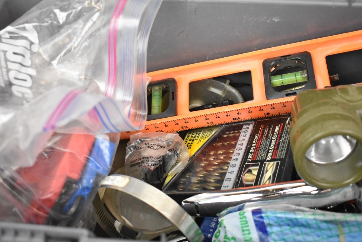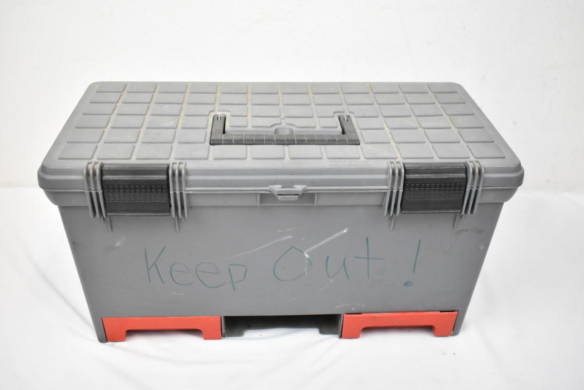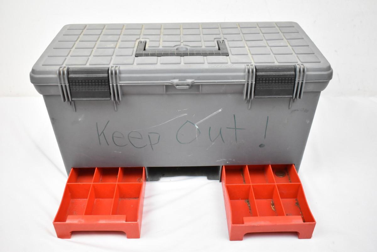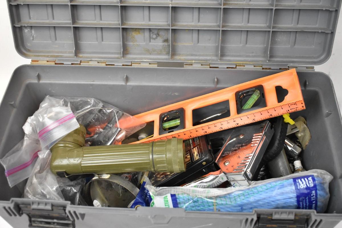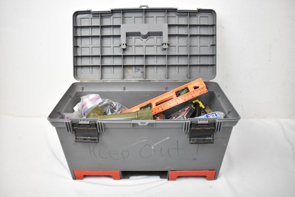 Tuff Stuff Toolbox with Various Tools and Accessories, Drill Bits, Flashlight