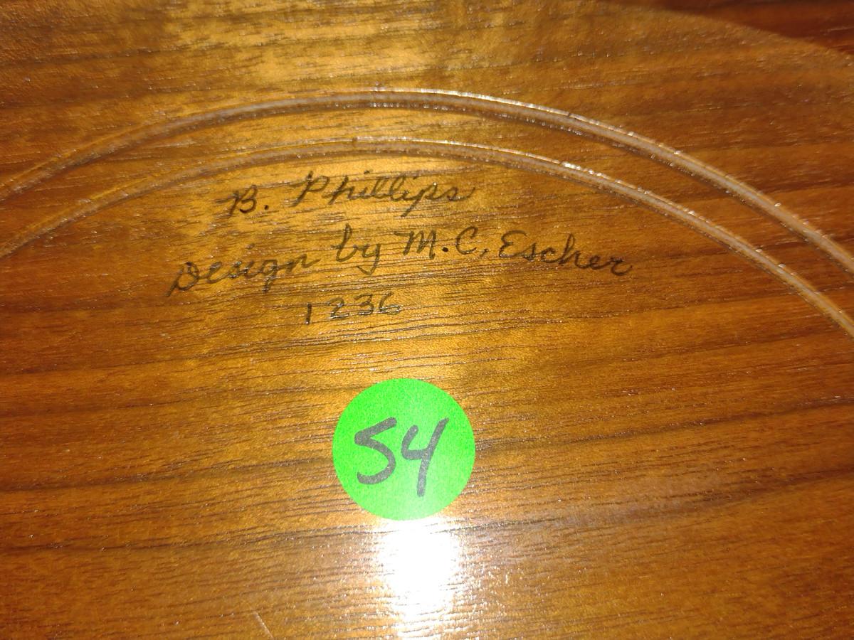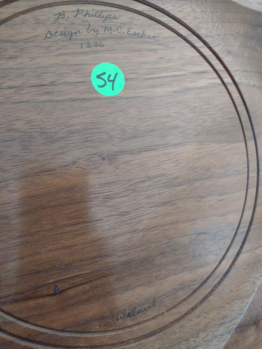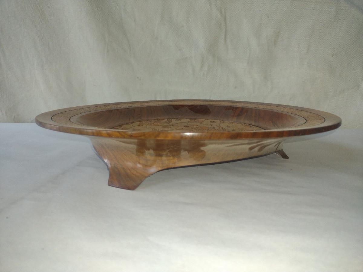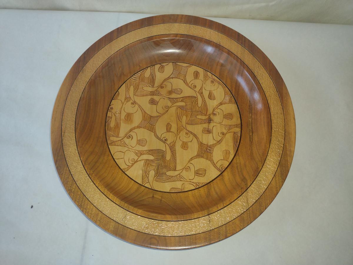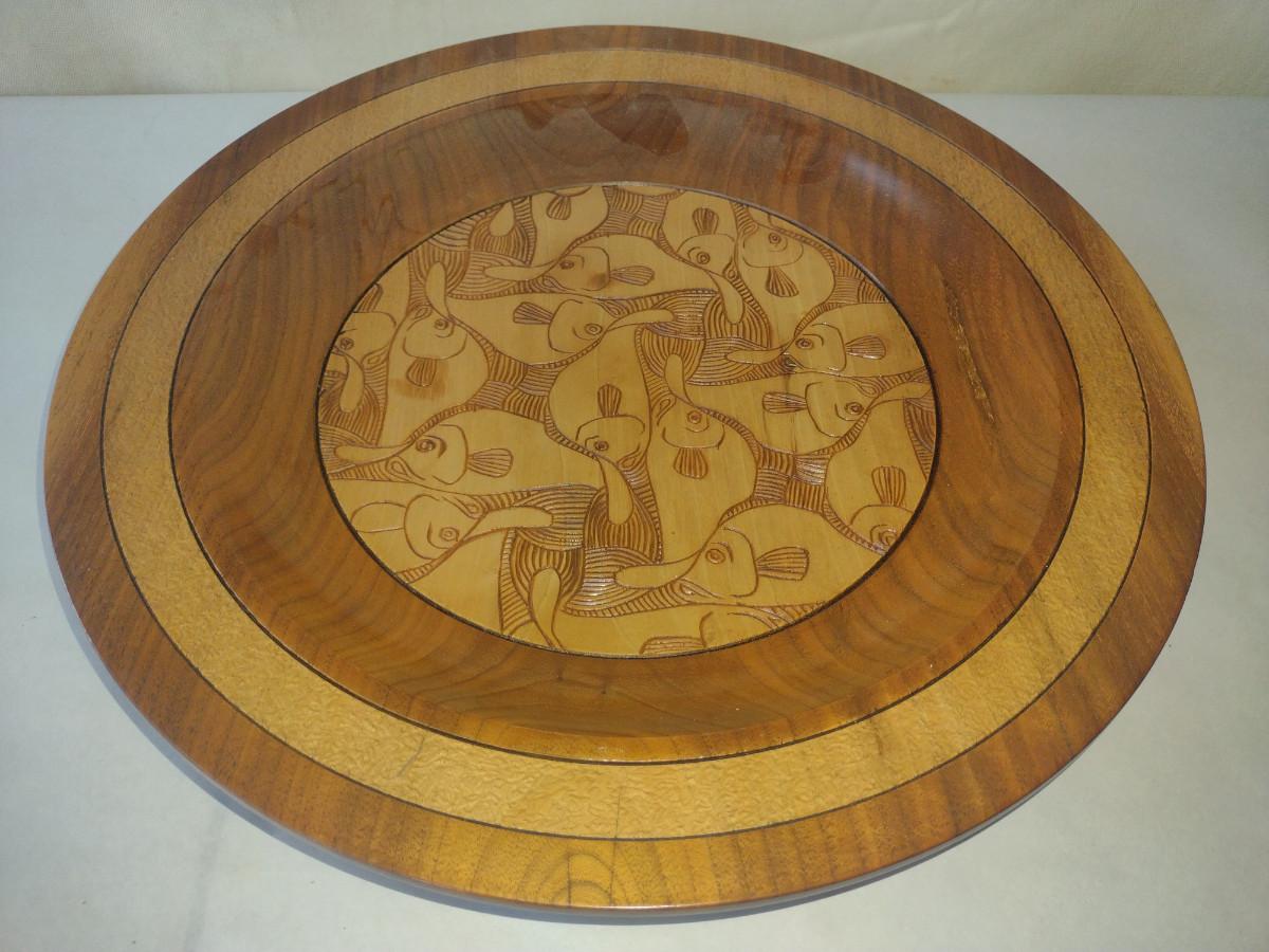 Turned Footed Wood Bowl with Fish Design by Bobby Phillips- Walnut- Approx 17" in Diameter (#54)