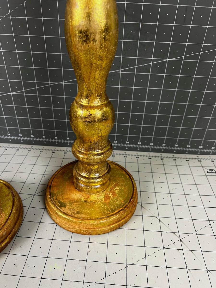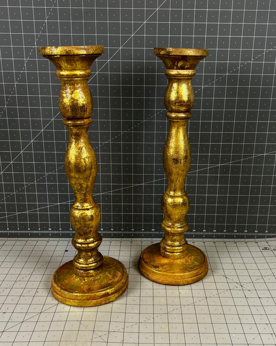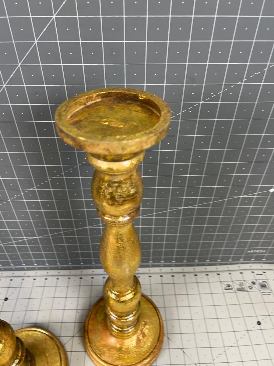 Turned Wood Candle Sticks Painted Goldleaf NEW