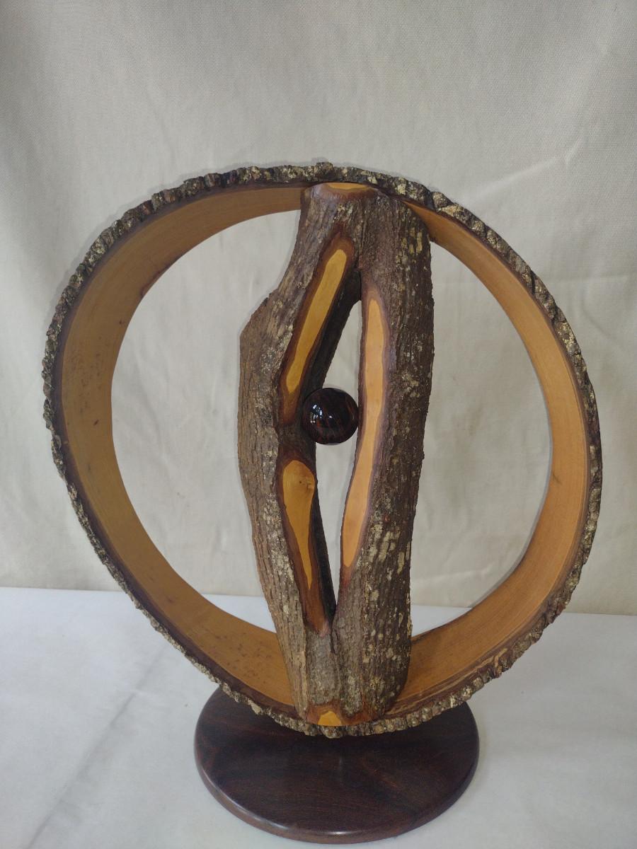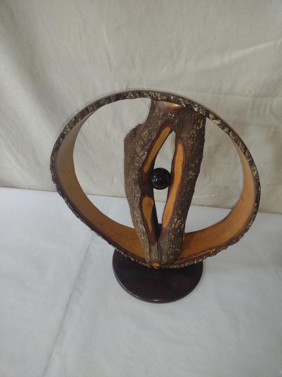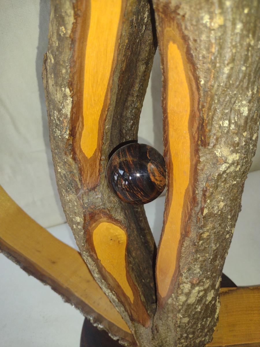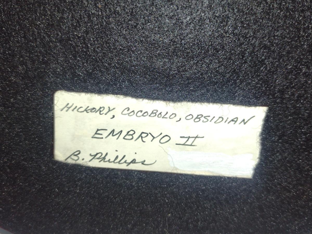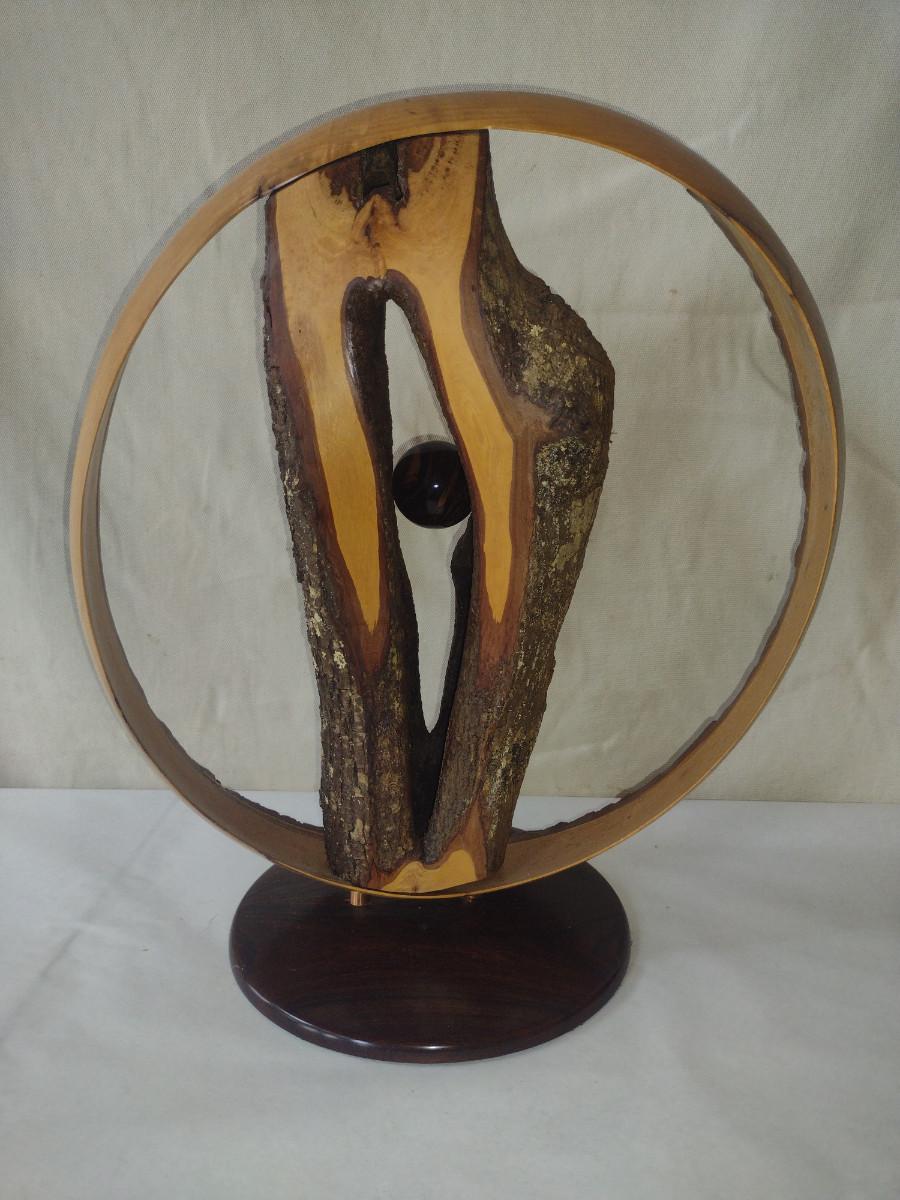 Turned Wooden Sculpture Titled 'Embryo II' by Bobby Phillips- Hickory, Cocobolo, and Obsidian with Captured Stone Orb.