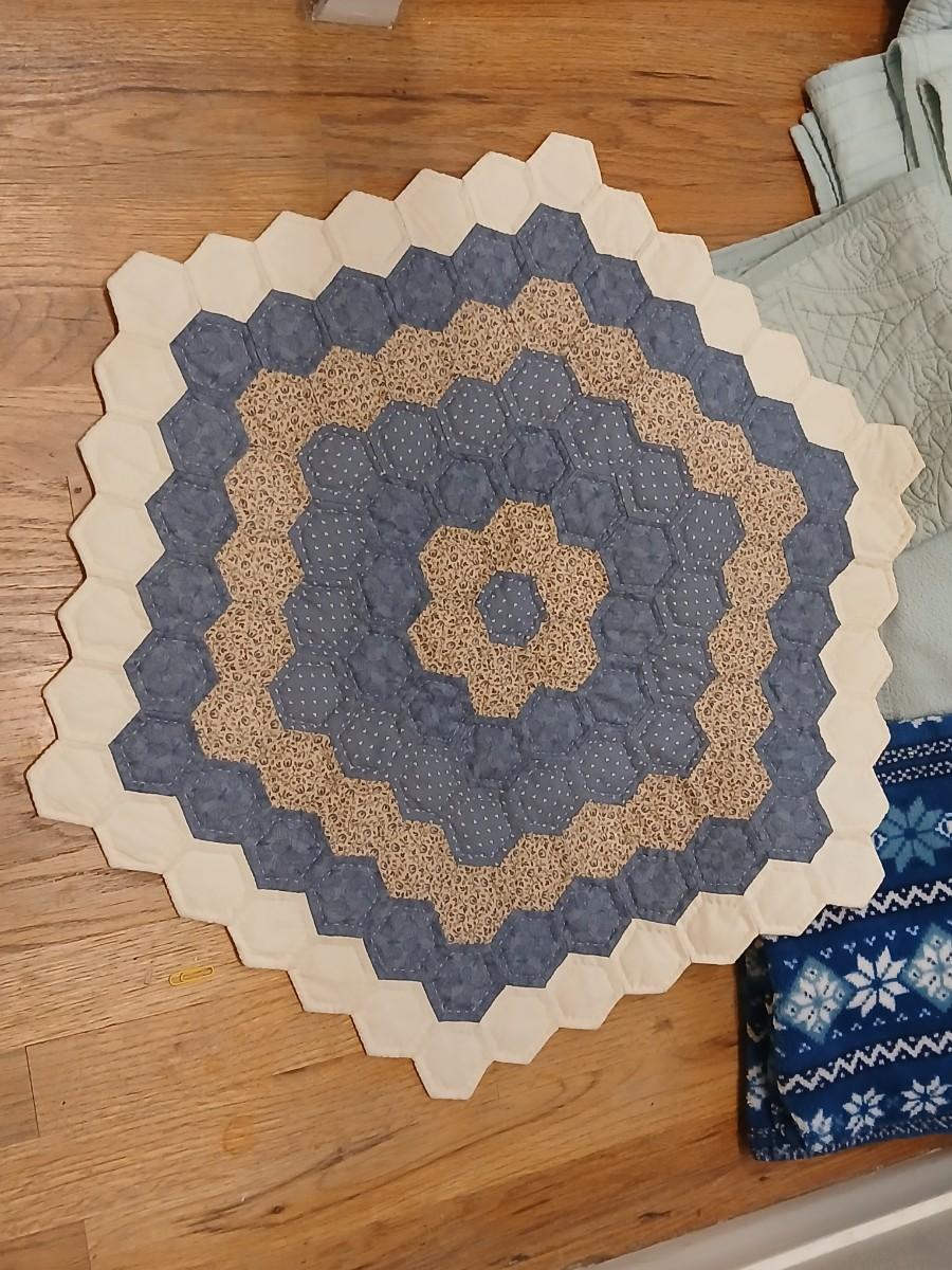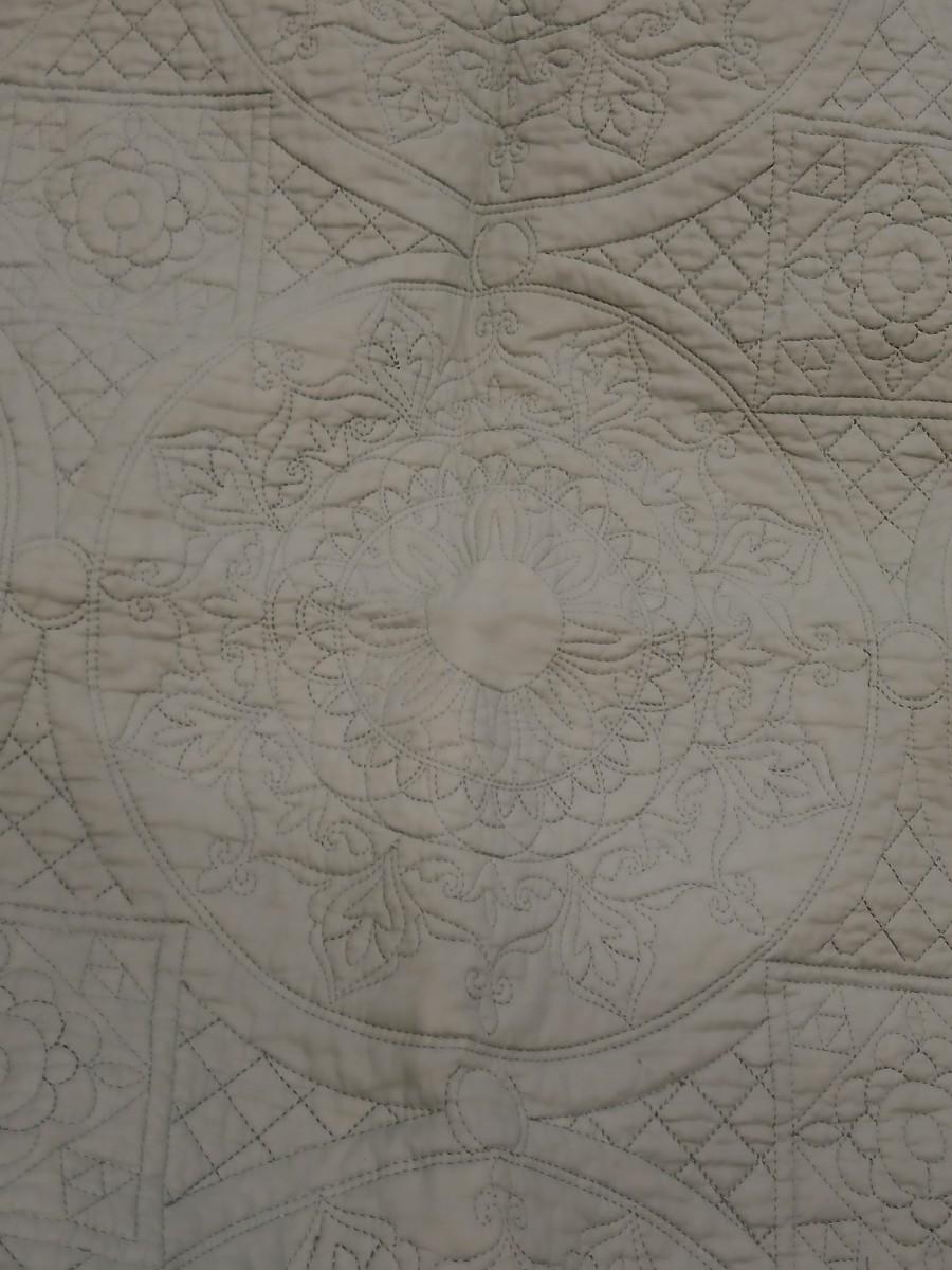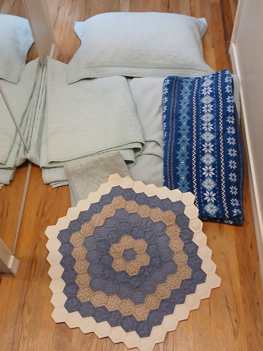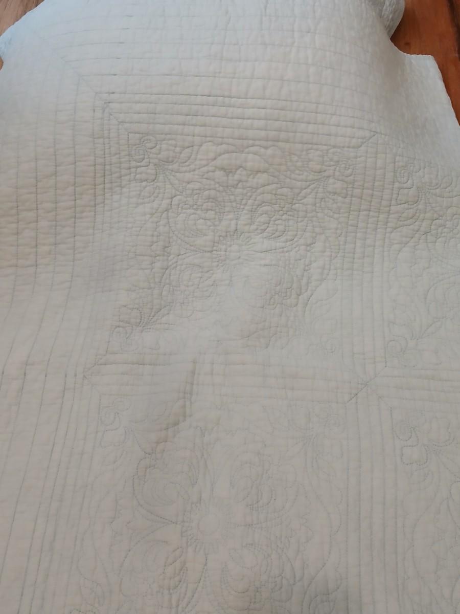 Twin sized bedspread with pillowcases with a Soft Twin blue blanket, a decorative pattern throw, and a quilted Doiley