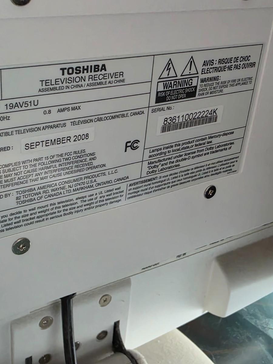 Toshiba Television Receiver 2008 (small tv) and Hisense LED LCD TV July 16, 2016