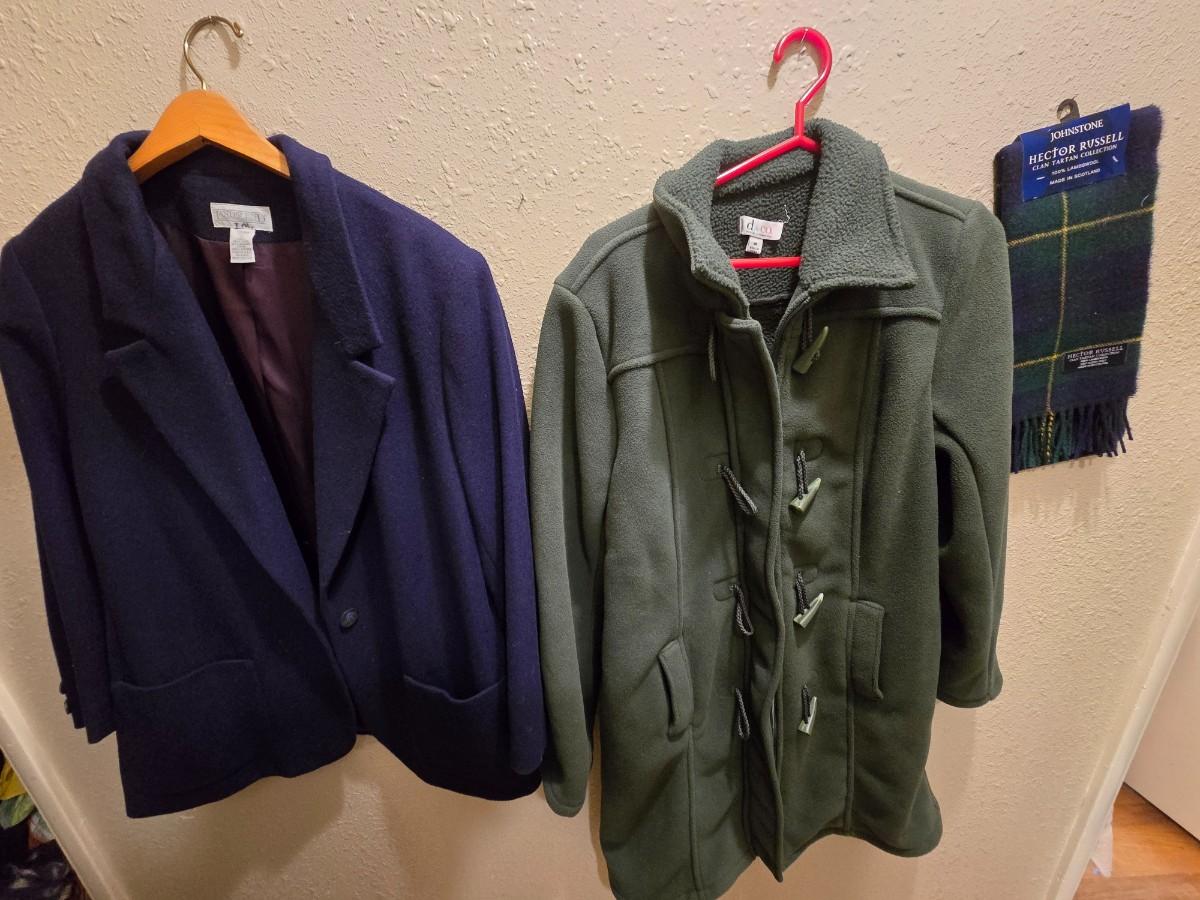 Two women's jackets - D&Co = Lands' End - with new Hector Russell scarf