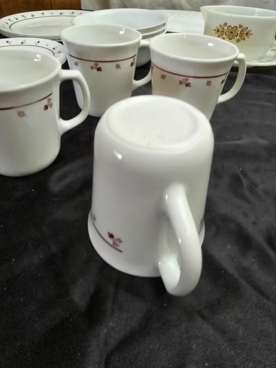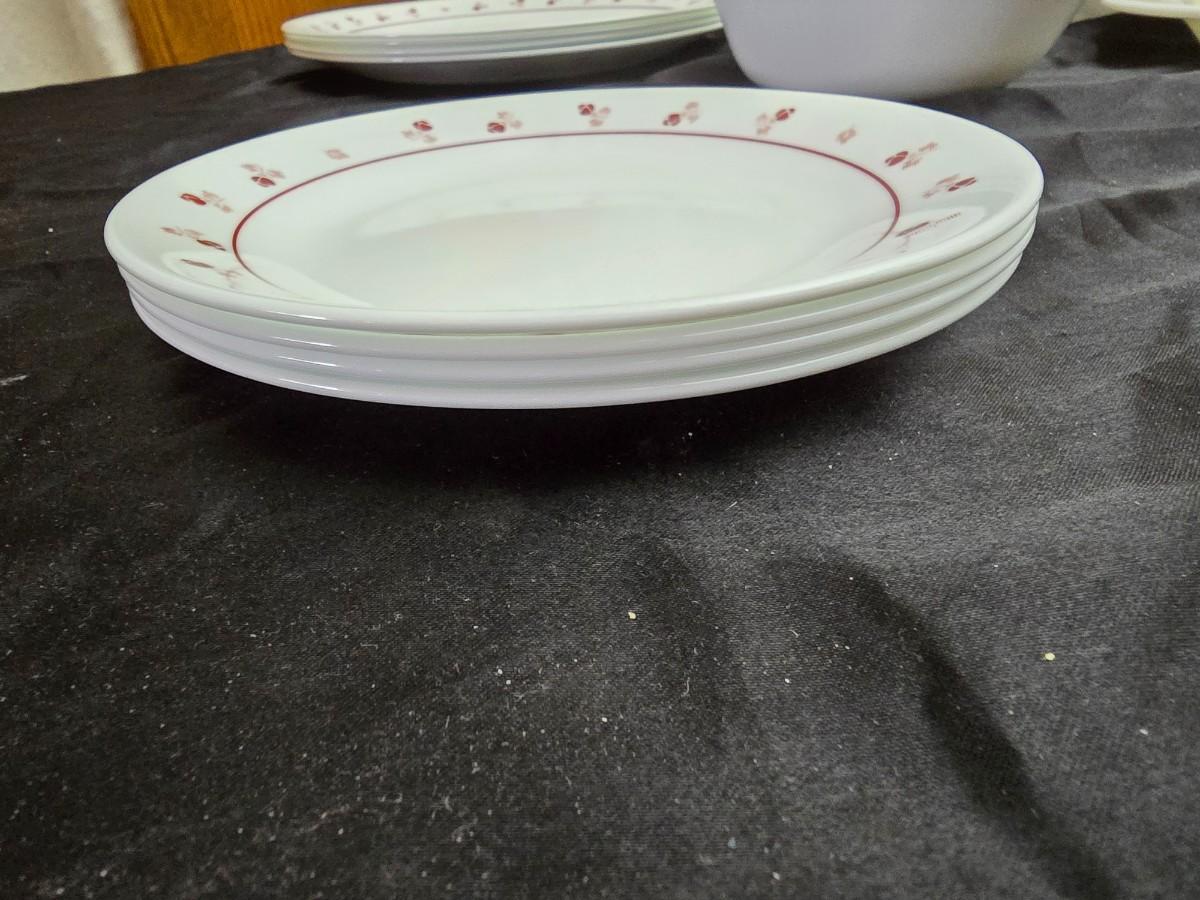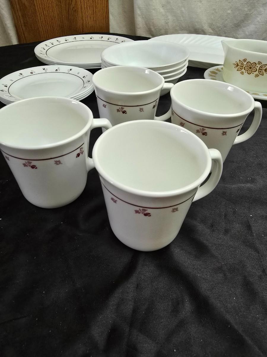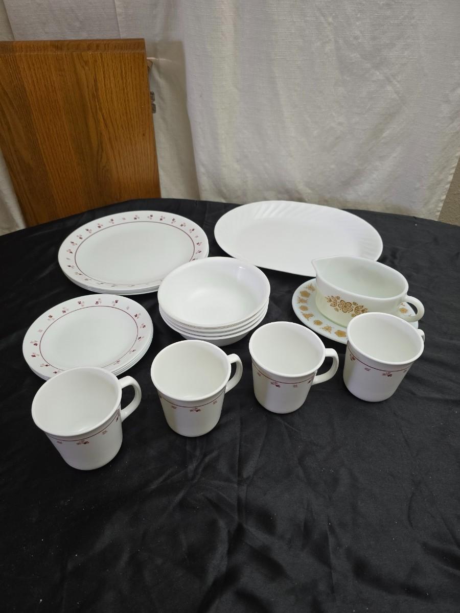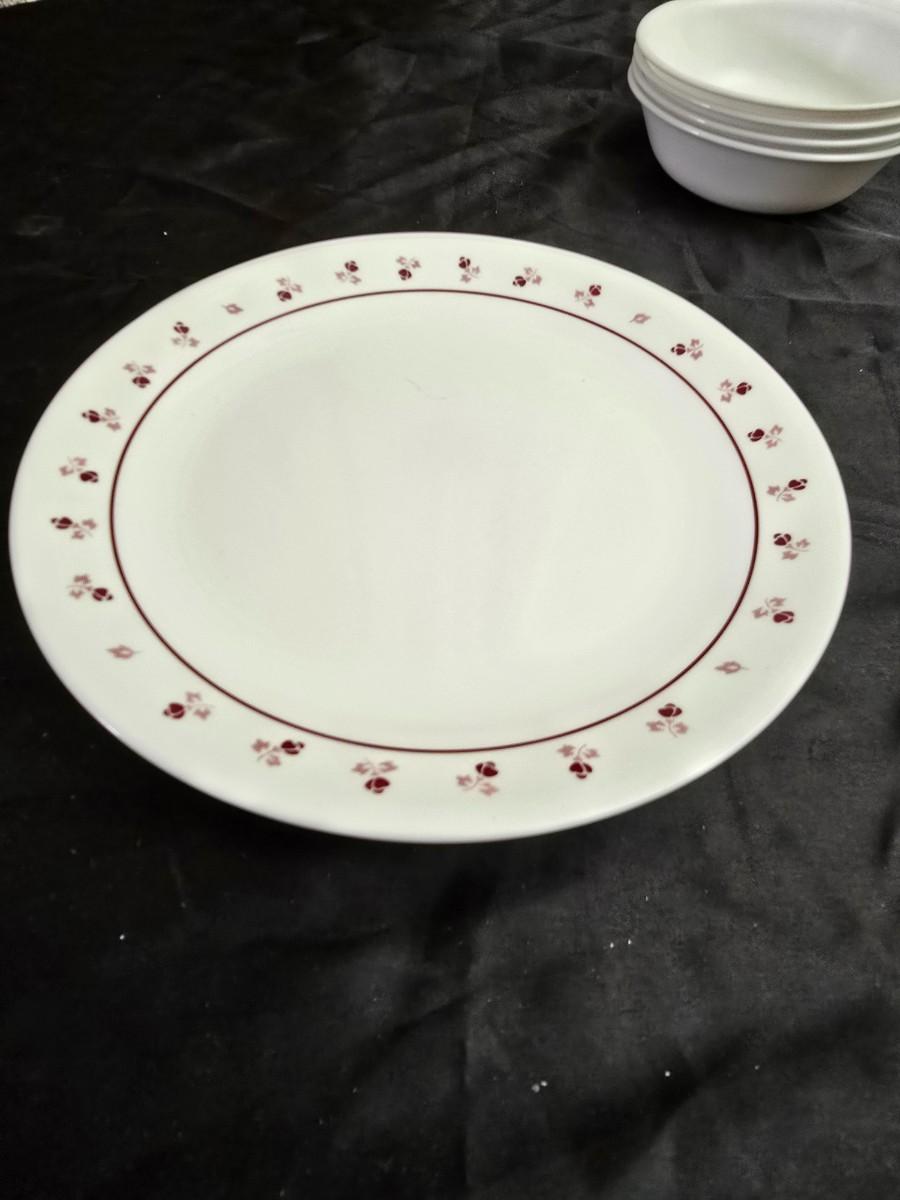 Correlle corning ware Burgundy rose dinnerware With Butterfly gold gravy boat