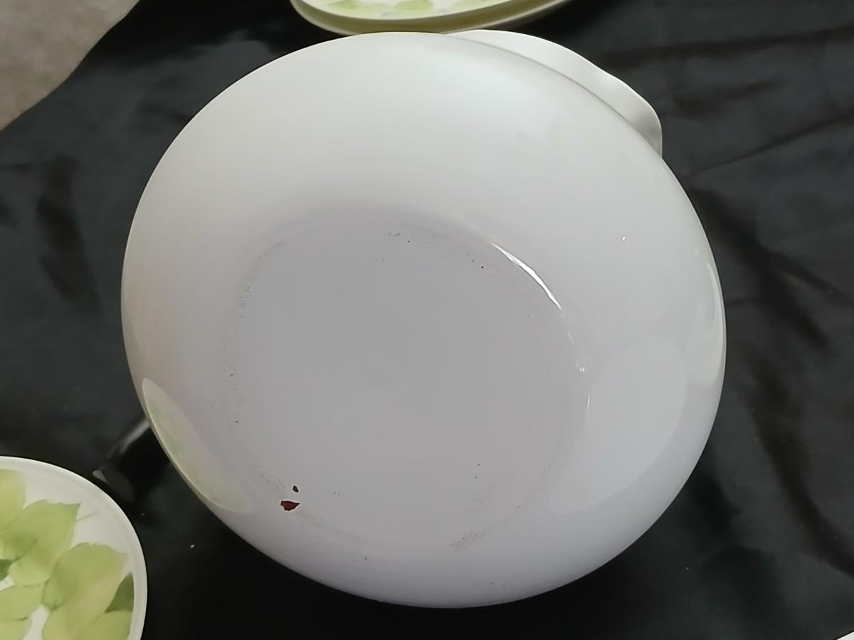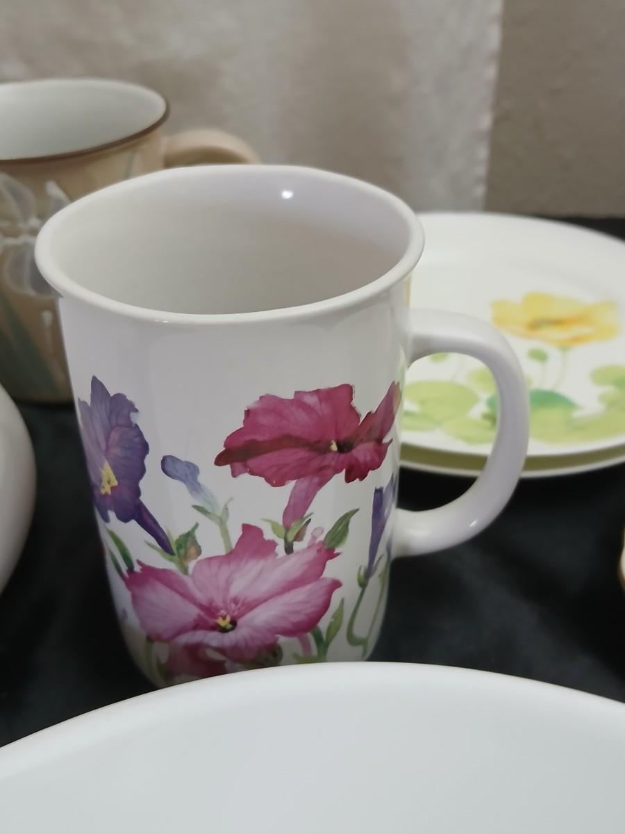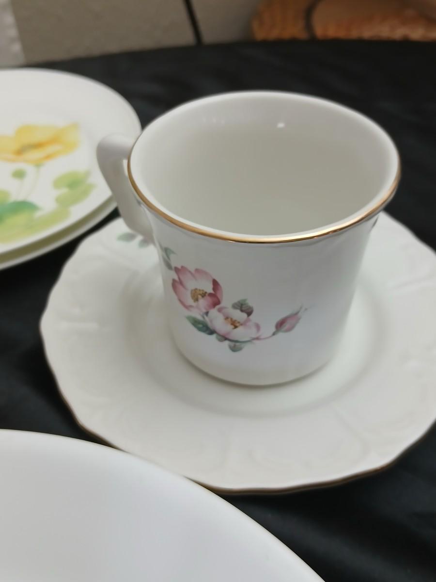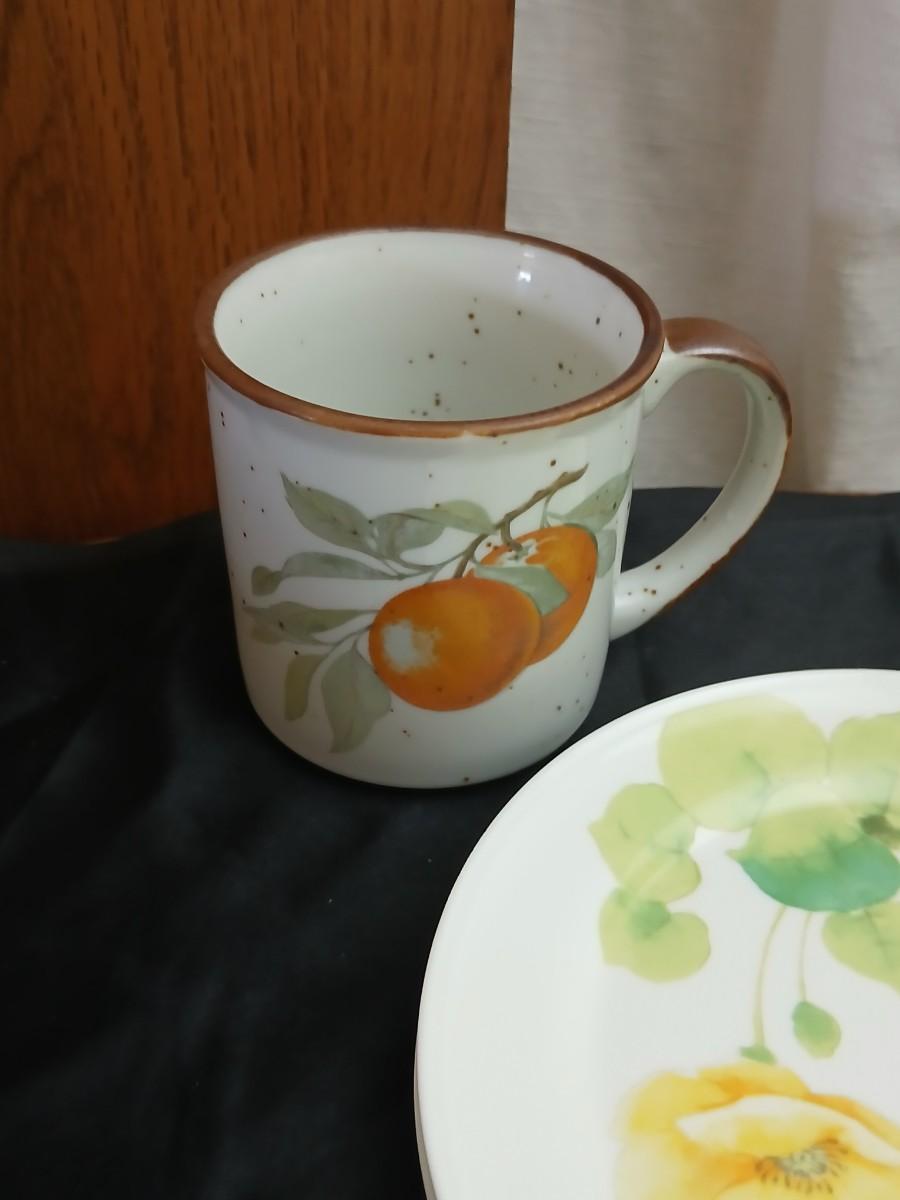 Vintage 1975 Corning Country Festival Blue Birds Coffee Tea Pot 6 Cups with platter, Mikasa dessert plates and mugs