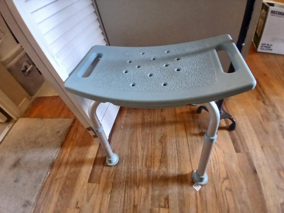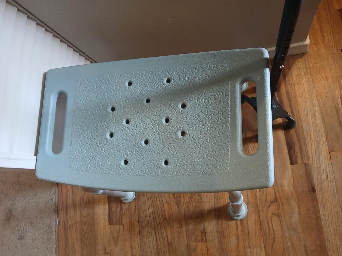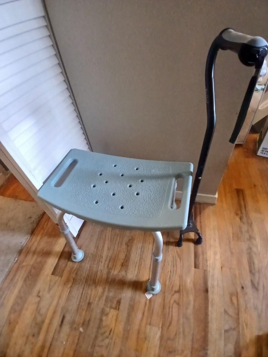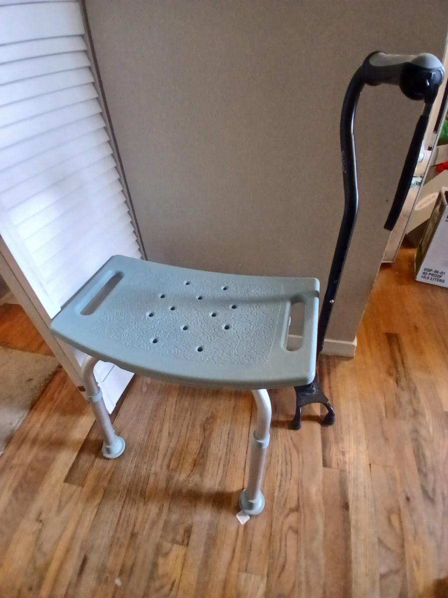 Walgreens shower chair and a Big Alex walking cane