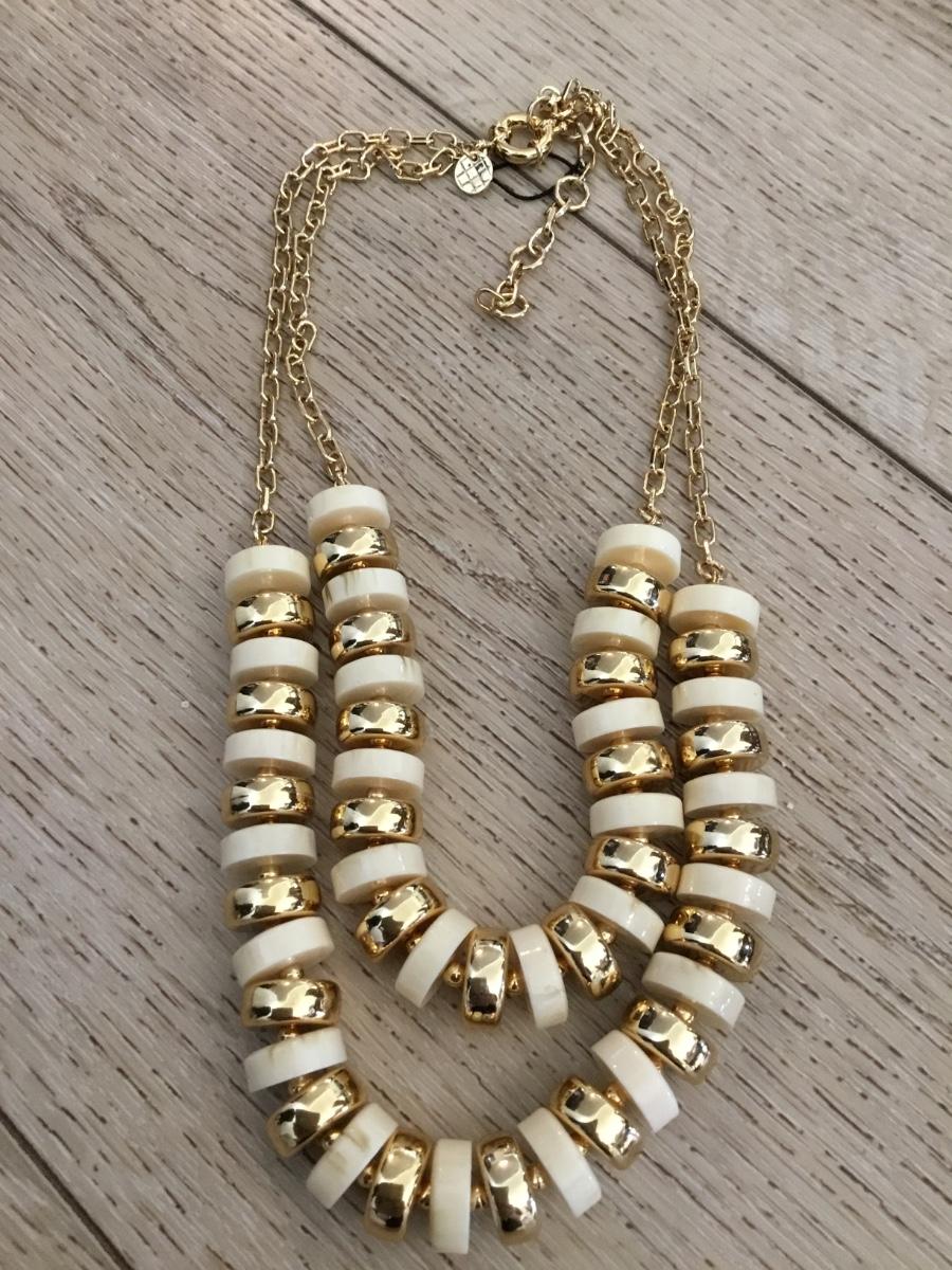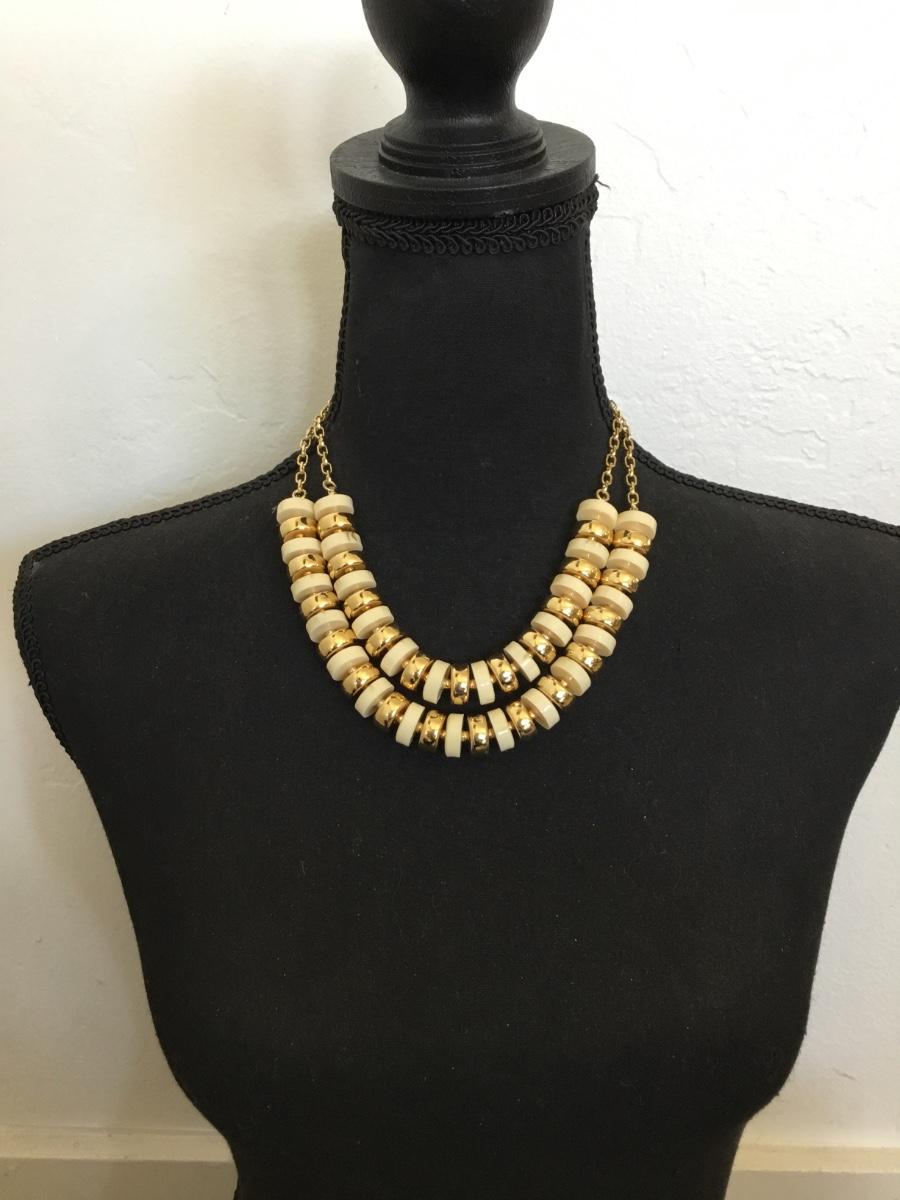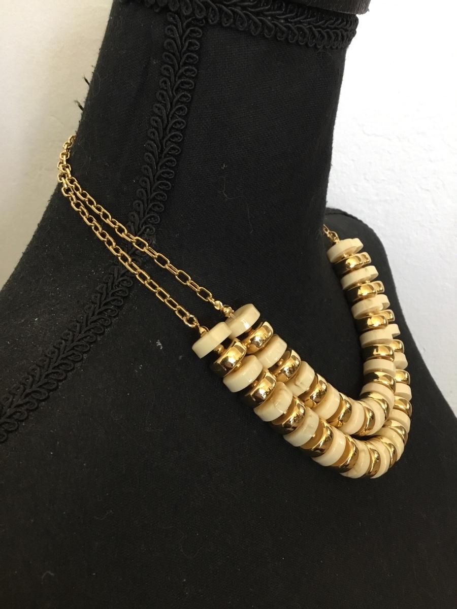 Very beautiful Talbots gold tone, cream layered fashion statement necklace very nice