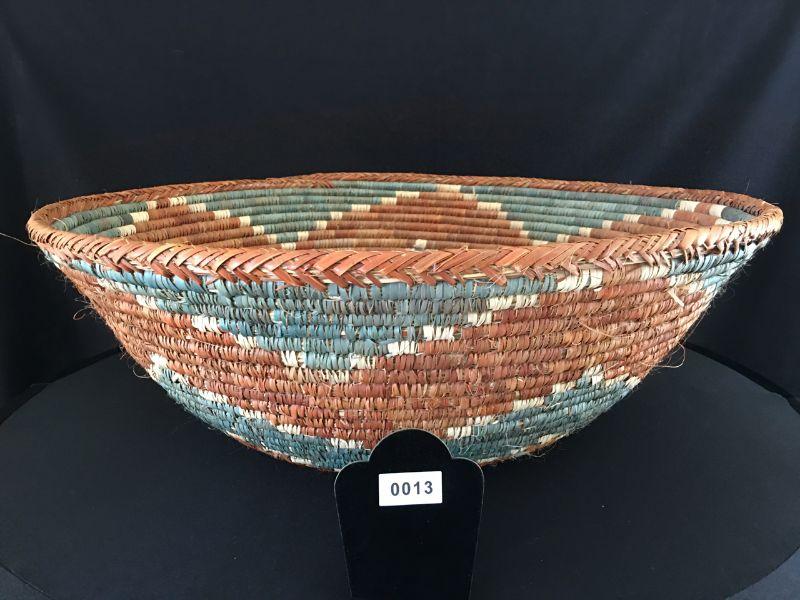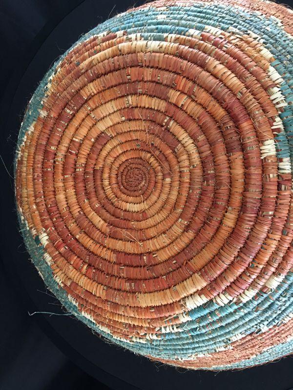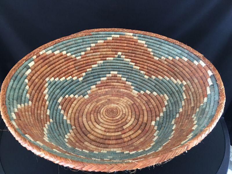 Very large hand woven kaisa grass, hand wrapped basket bowl in perfect condition. Item #13