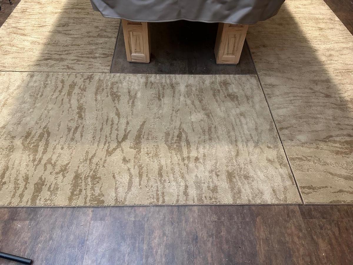 Large pieces measure 144”L x 48-1/4”W and smaller pieces measure 100-3/4”L x 48-1/4”W