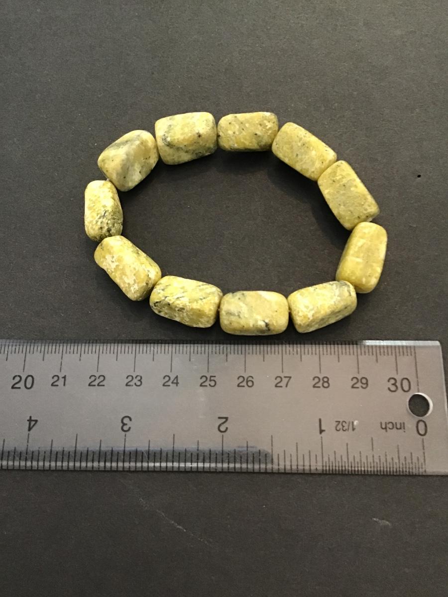 Very nice green polished stone stretchy bracelet. Please see attached photos.