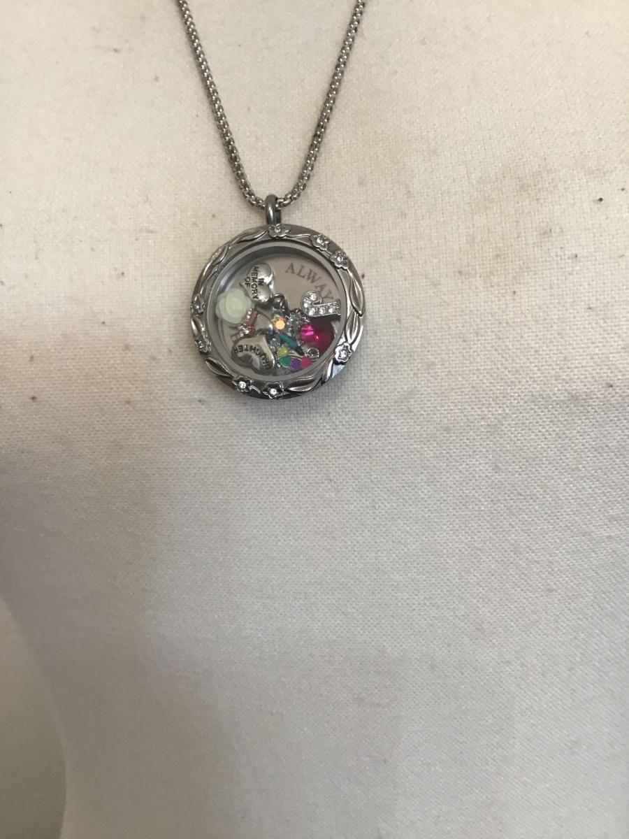 Very nice silver necklace with a charm pendant. Please see attached photos.