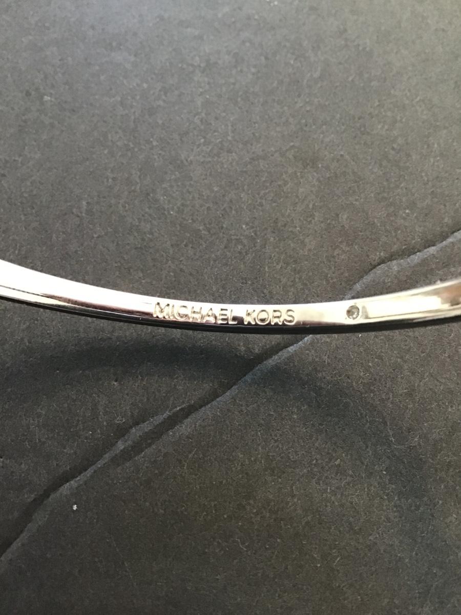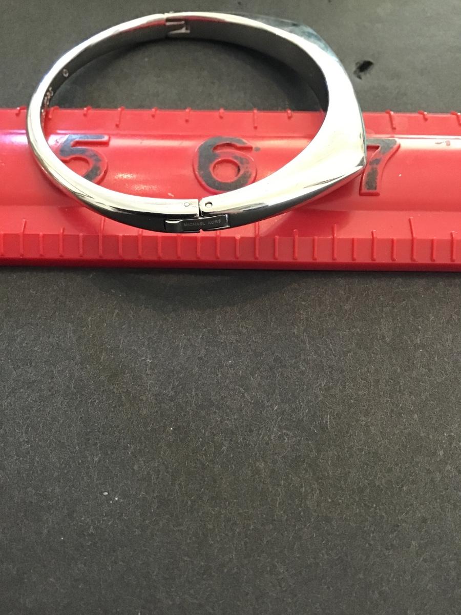 Very nice SilverTone Michael Kors hinged bracelet with turquoise stone. Please see attached photos.