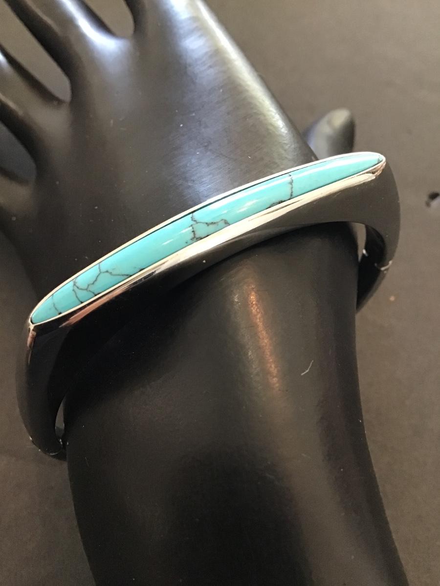 Very nice silver toned, Michael Kors hinge bracelet with turquoise