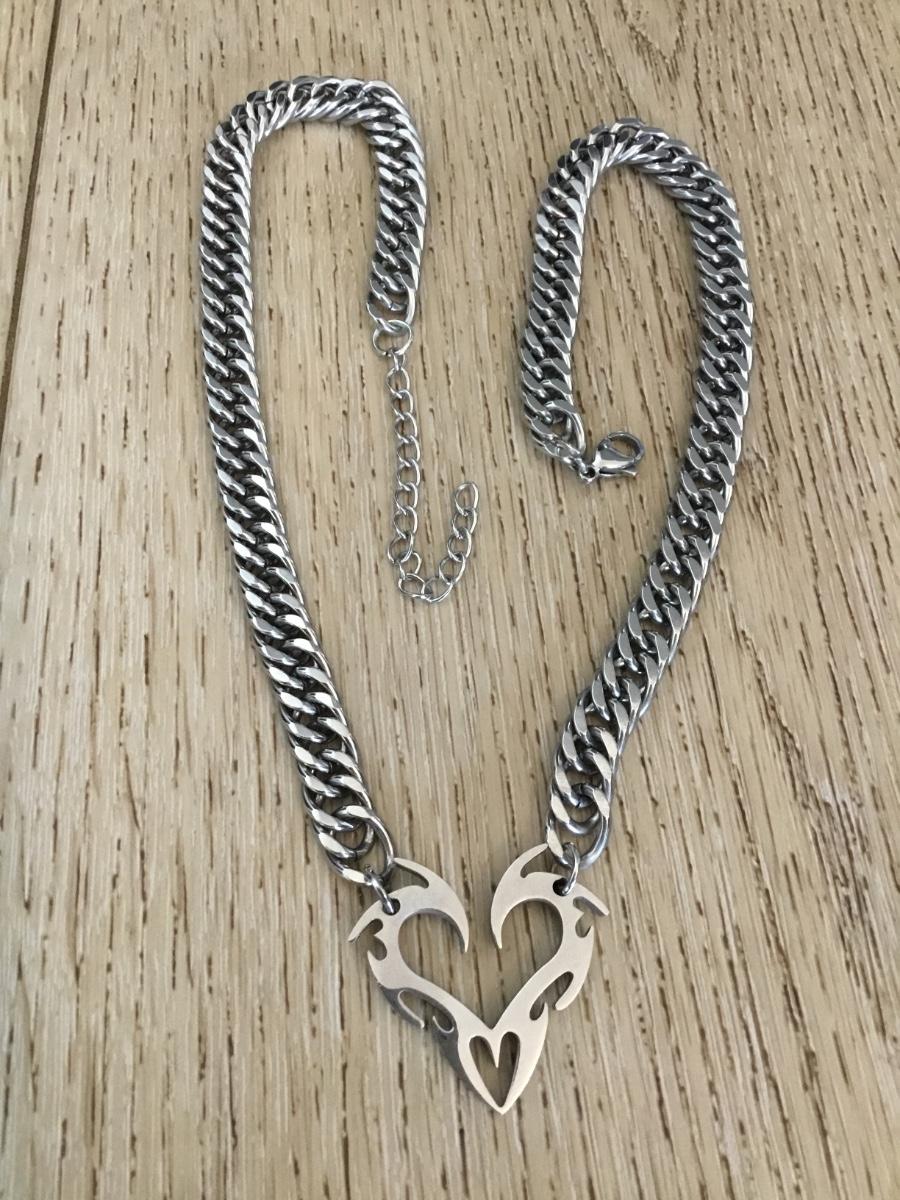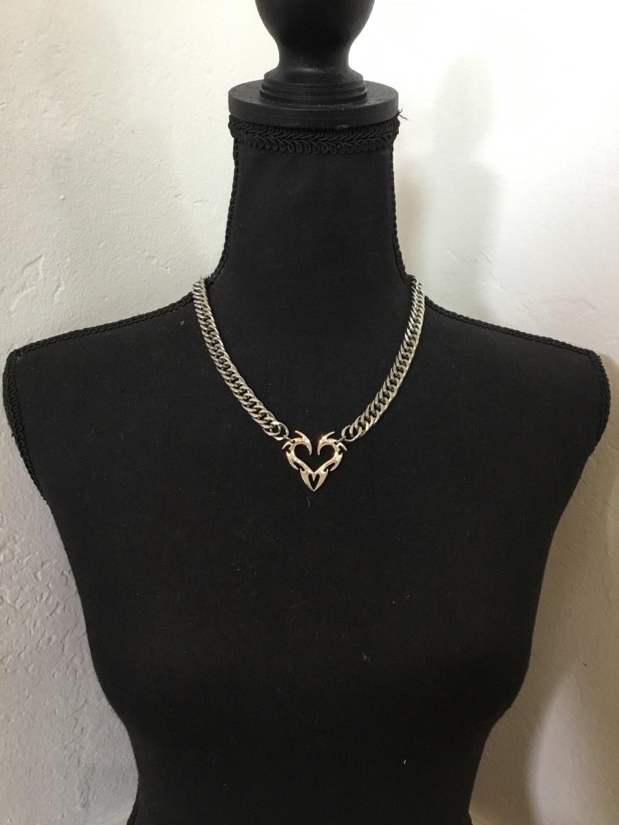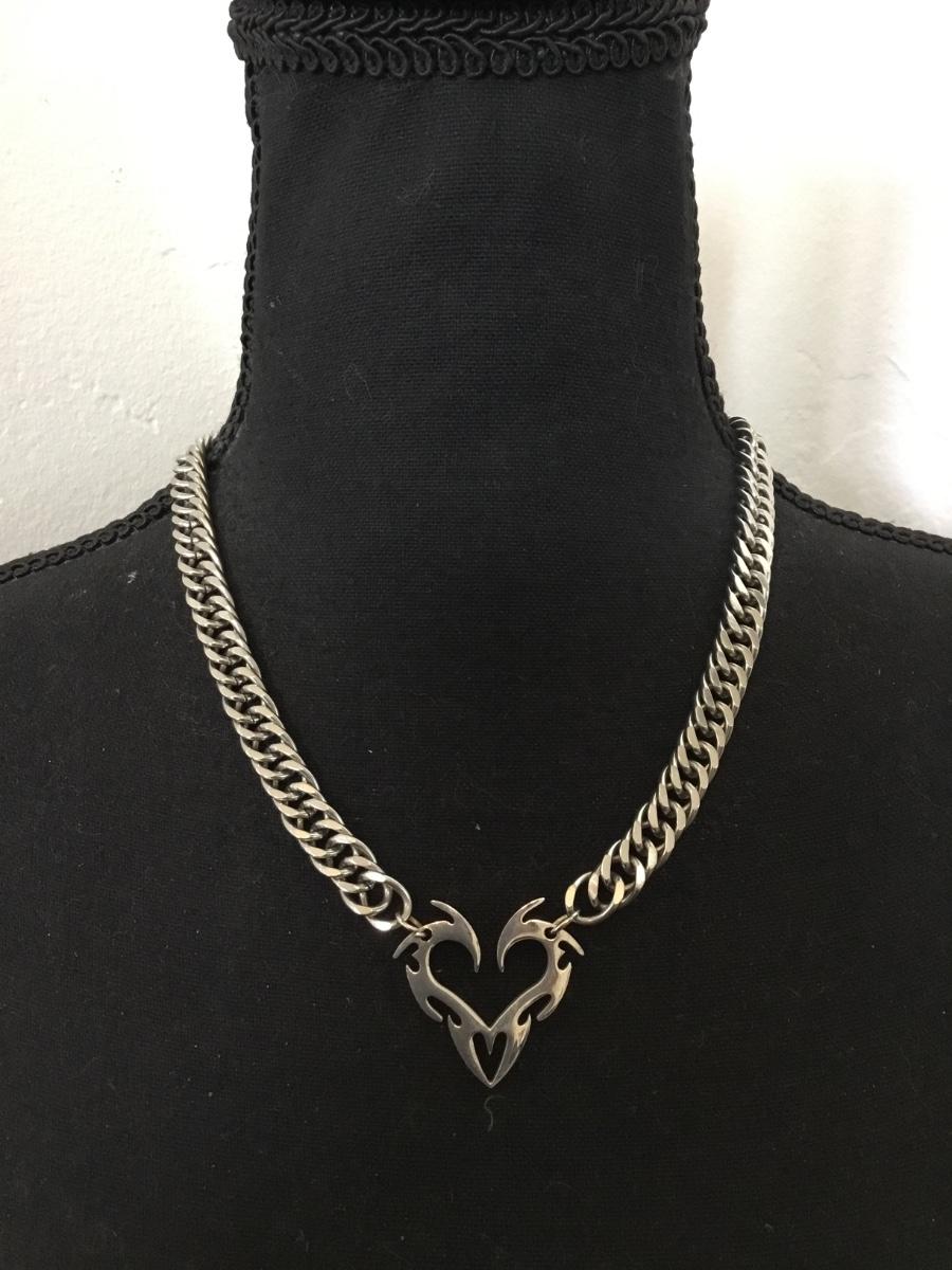 Very nice stainless steel chunky, silver, toned, heart statement, necklace