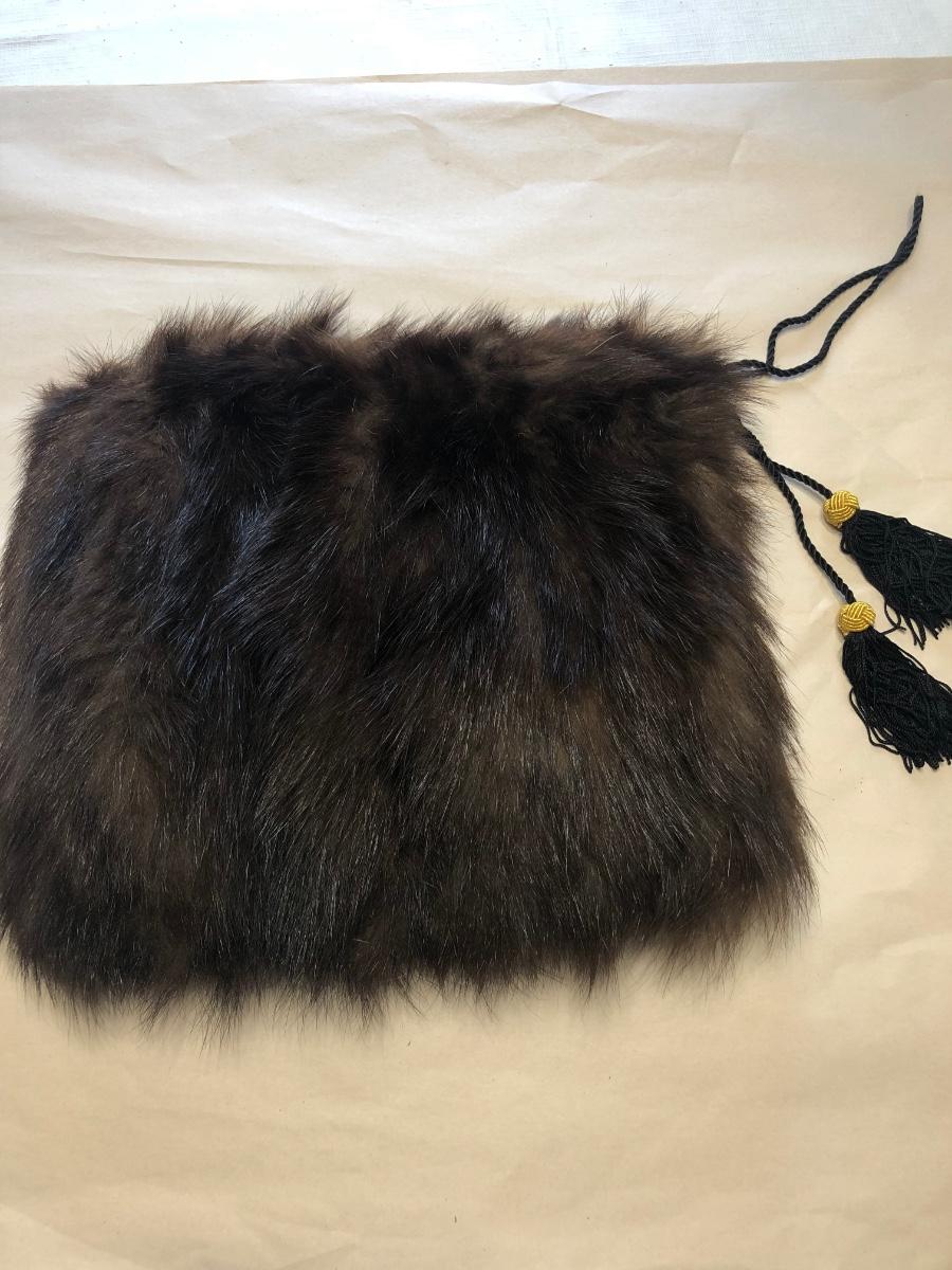 Very old Dark brown mink hand muff with zippered pocket purse.