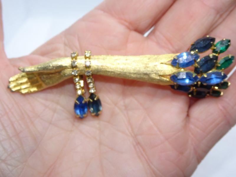 Victorian Style Lady Hand & Arm Rhinestone Brooch, Gorgeous!