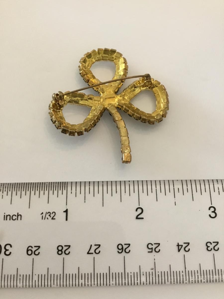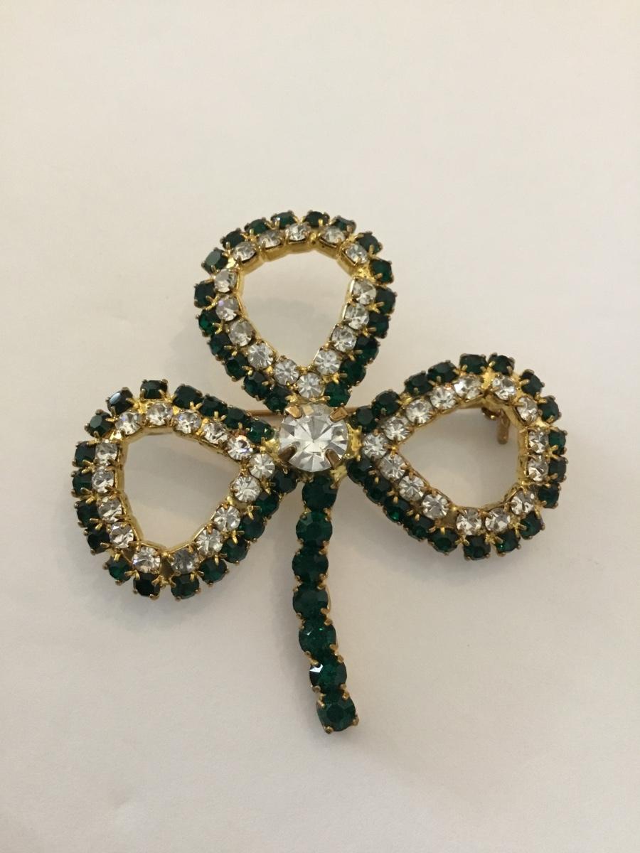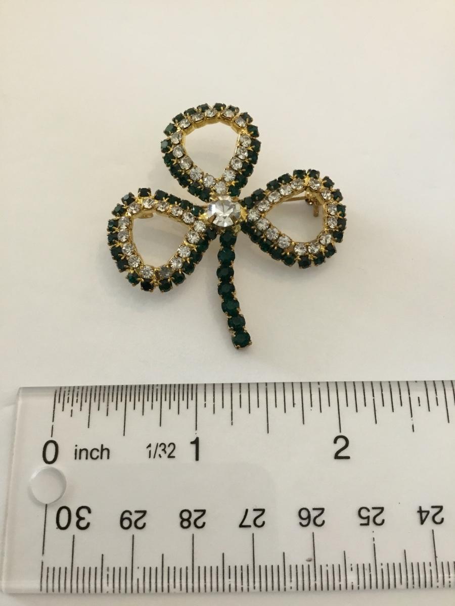 Victorian trading co Dk Emerald, crystal rhinestone, three leaf clover, brooch/pin
