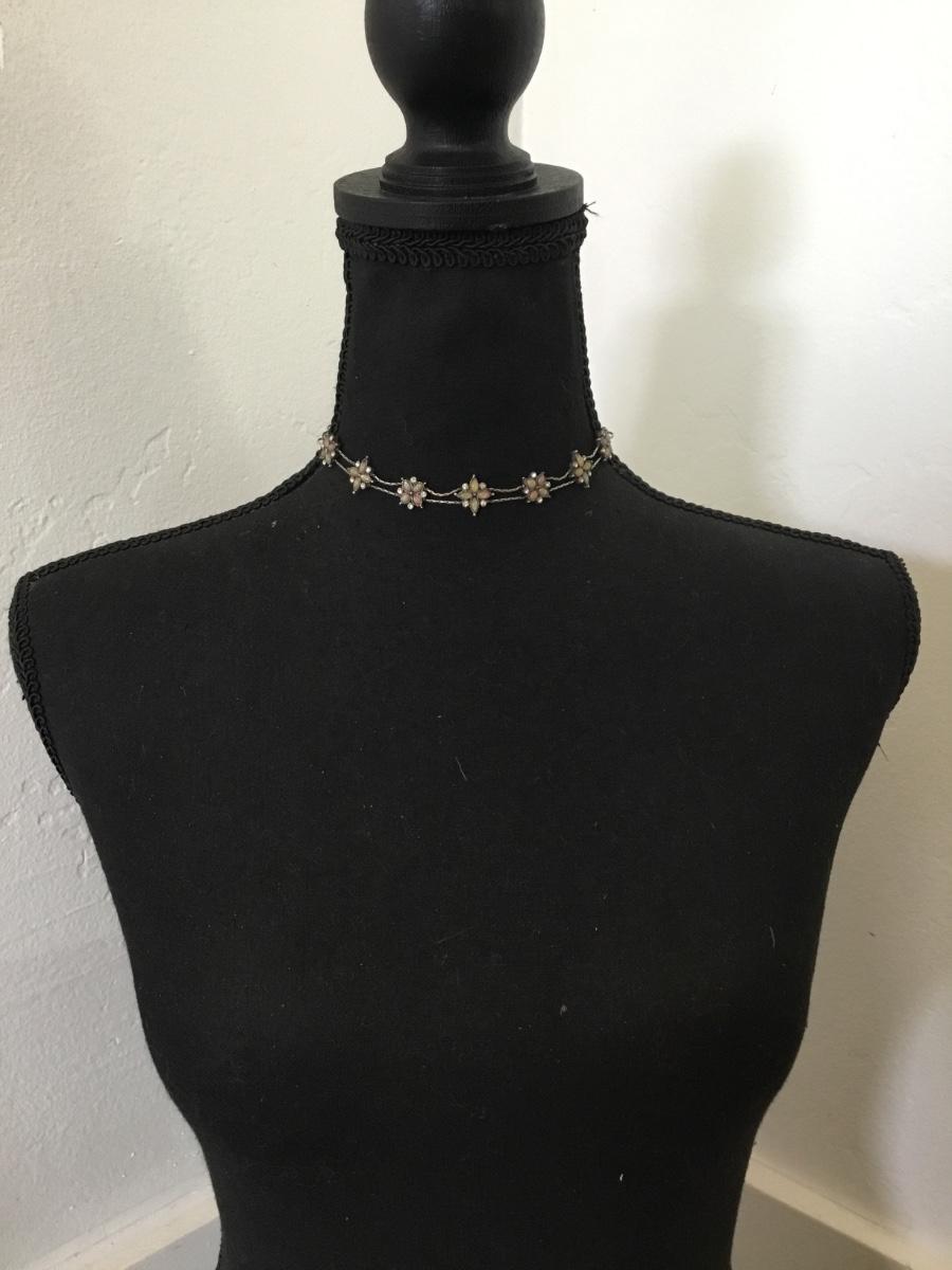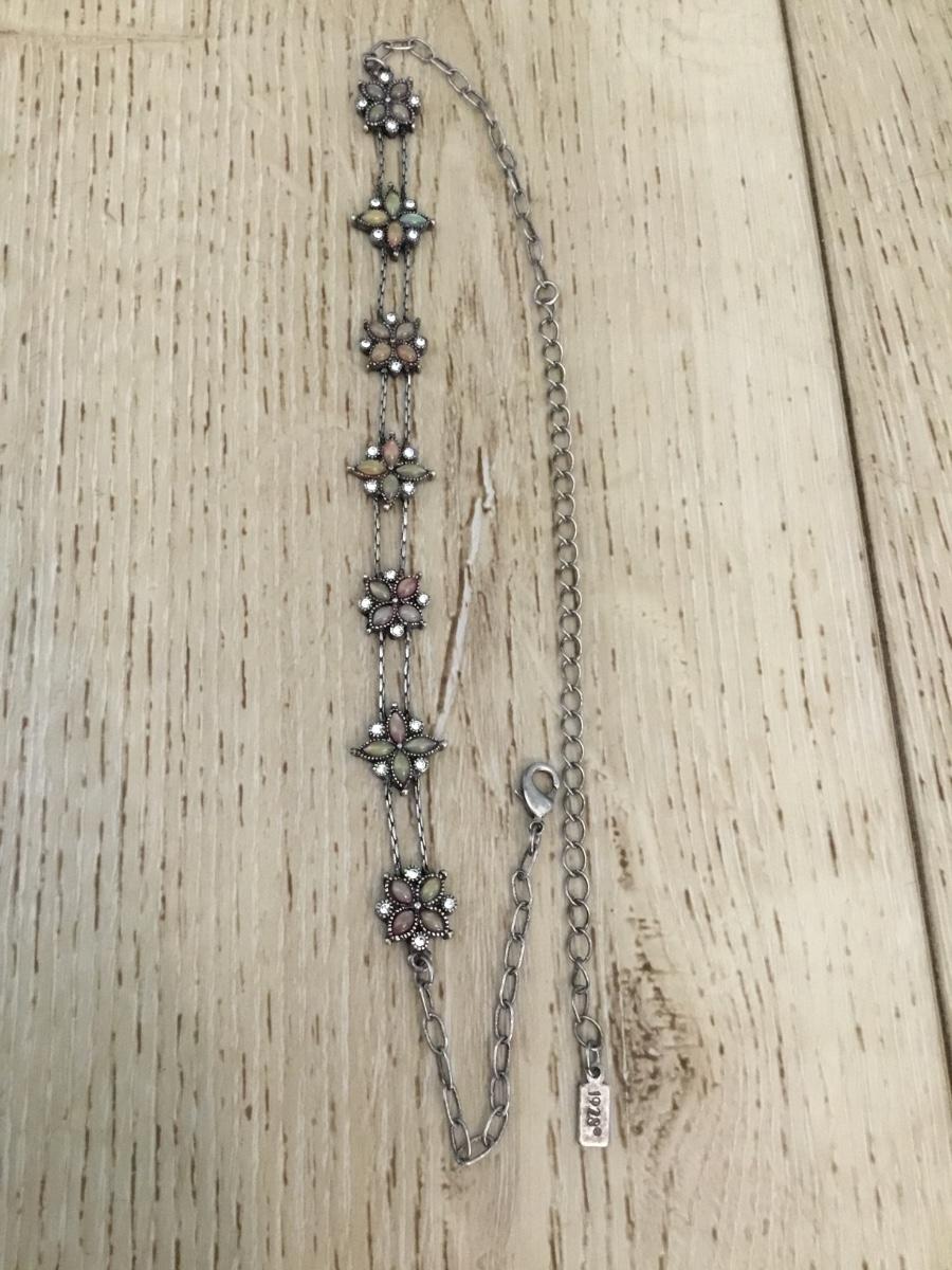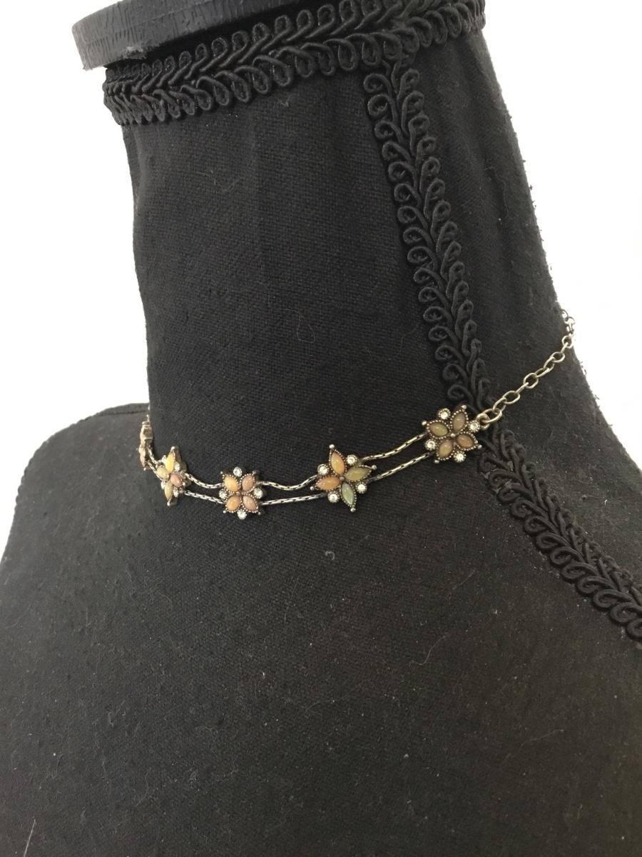 Vintage 1928 Company, Silver-tone, iridescent, flower, choker necklace