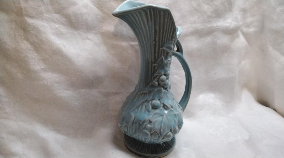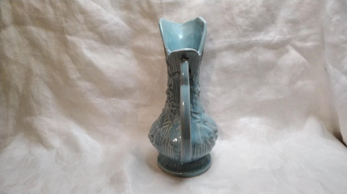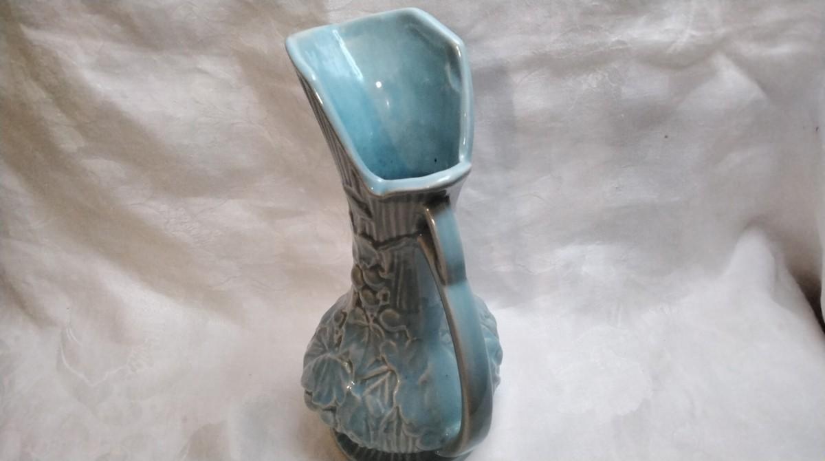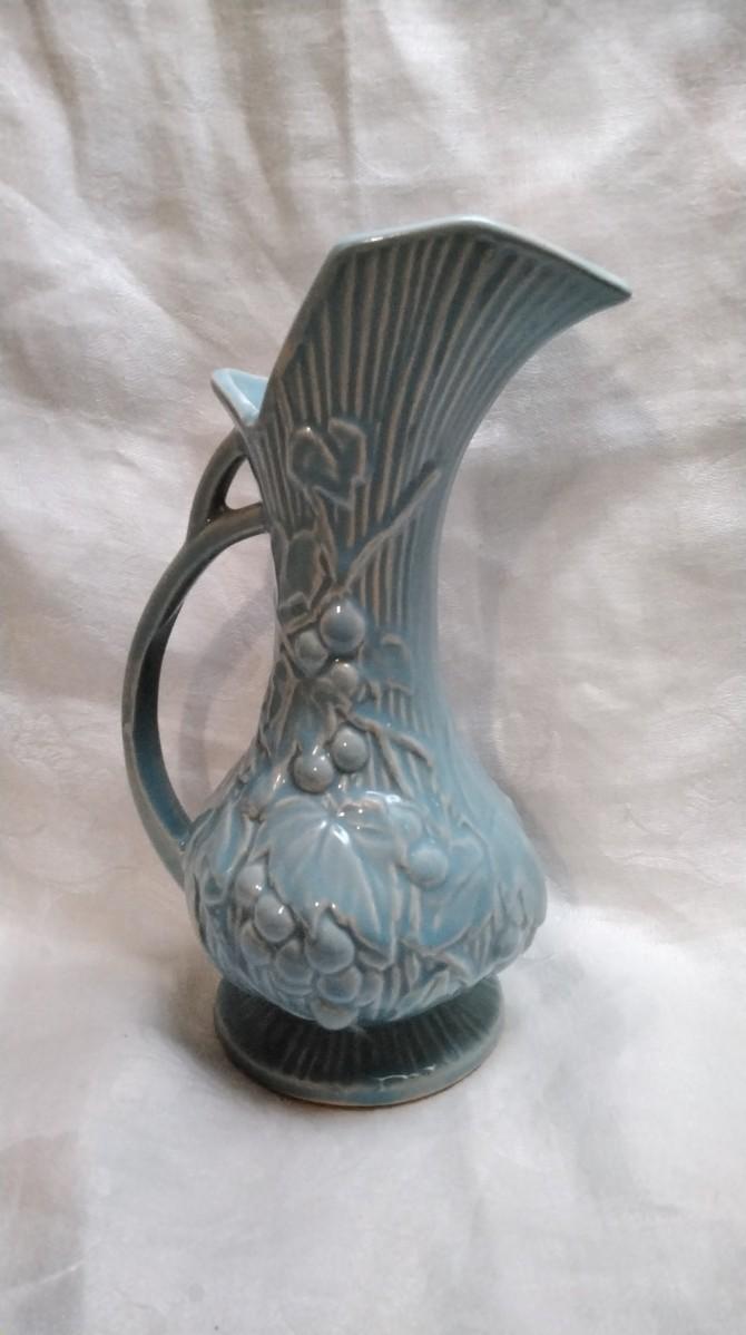 Vintage 1940's Blue Mccoy Pottery Grape Vine & Leaves Ewer