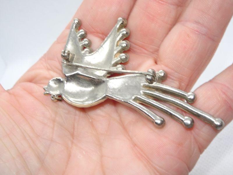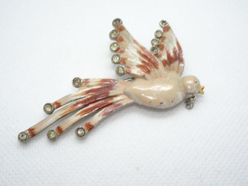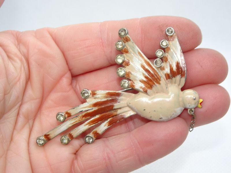 Vintage 1940's Hand Painted Bird Pin, Missing Stones