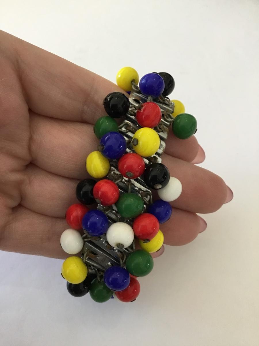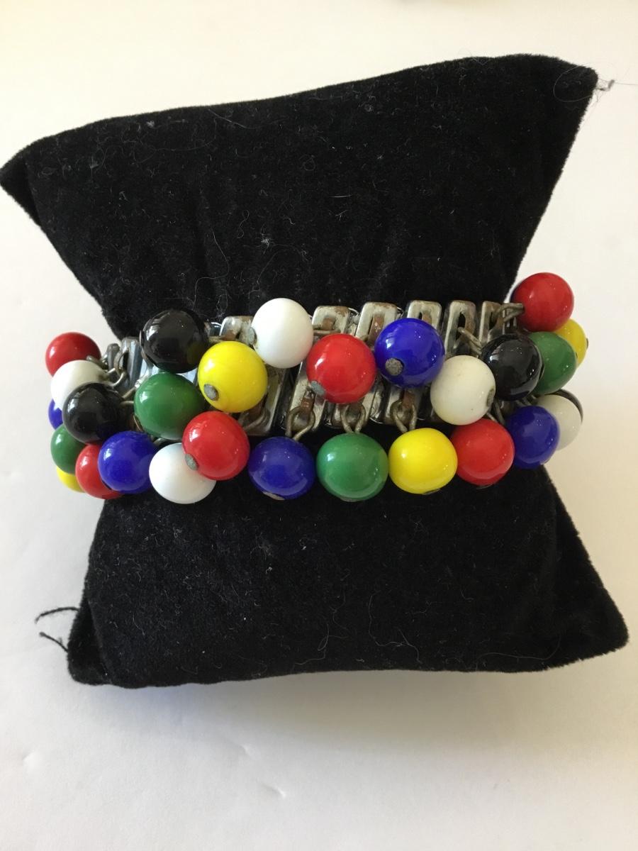 Vintage 1950s 40s multicolored bead stainless steel stretch flex band cha cha bracelet