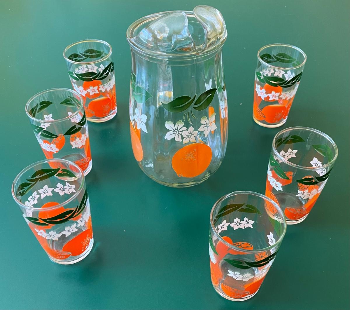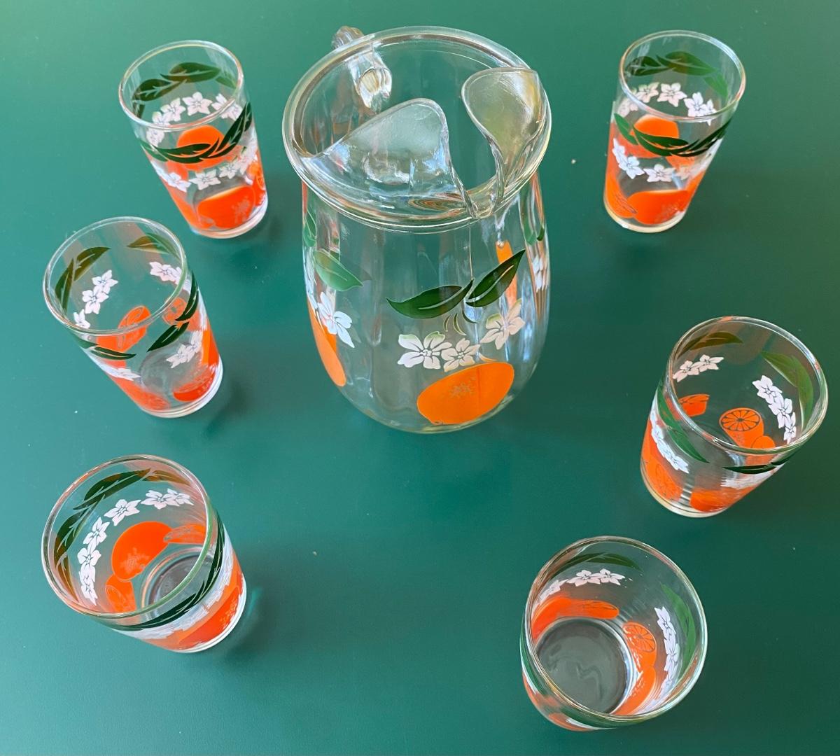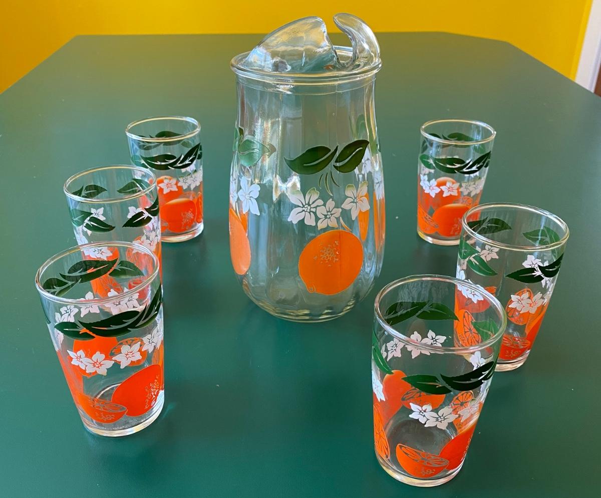Vintage 1950s Bartlett Collins Pitcher & 6 Glasses