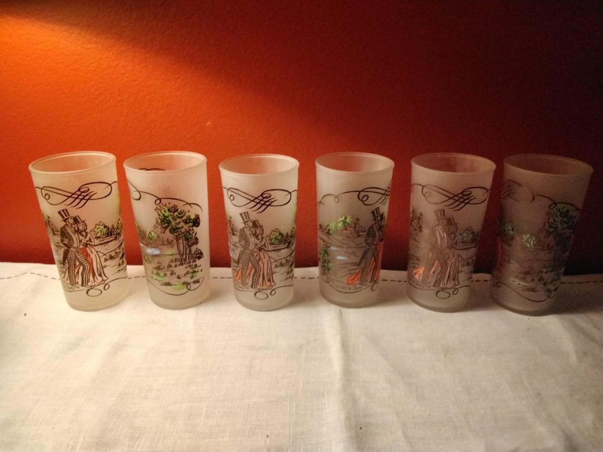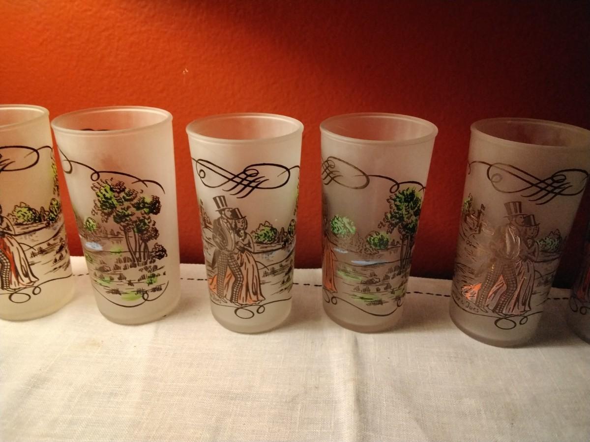 Vintage 1950s Currier & Ives Frosted Tall Tumbler Glass set of 6