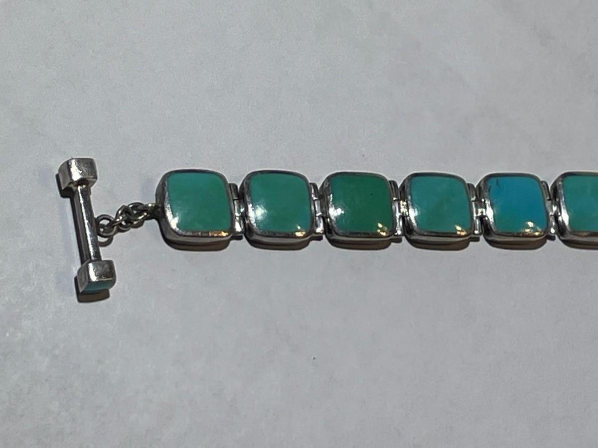 Vintage Acleoni Classic Southwest Turquoise 7-8" Adjustable Bracelet Color Varies from a Clear Powder Blue to a Bluish/Green Turquoise's in Good Preowned Condition. $5 Domestic Shipping.