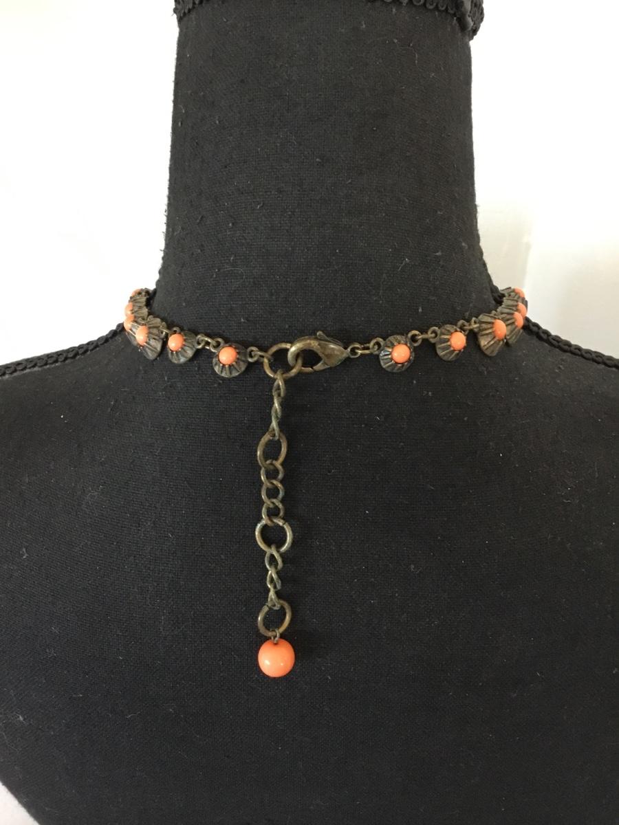 Vintage antique, gold, toned, coral bead, statement, necklace