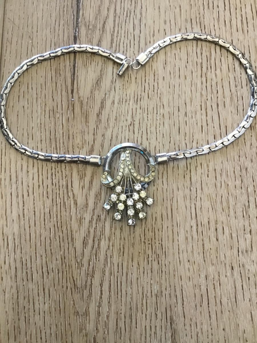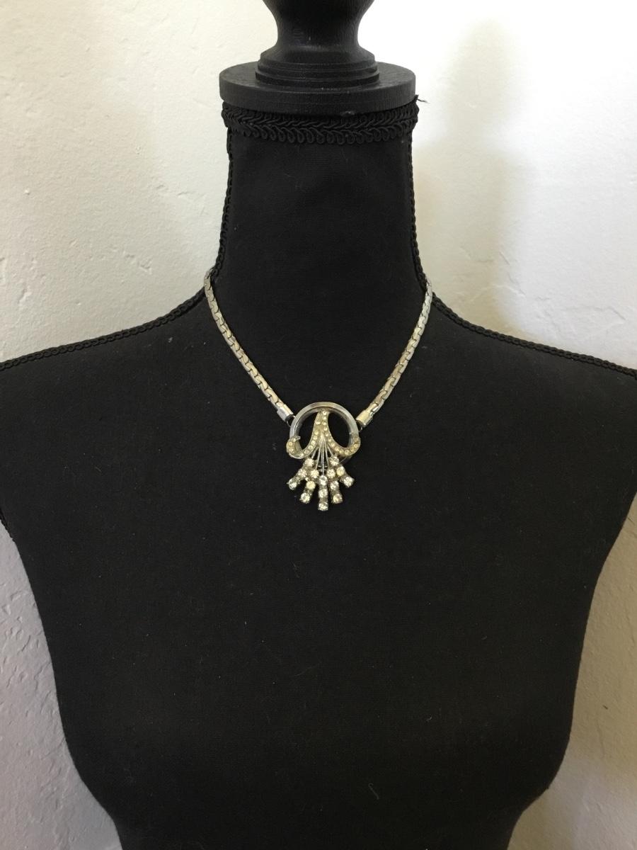 Vintage art, deco, Silver-tone, rhinestone statement, necklace