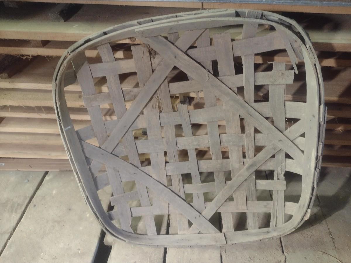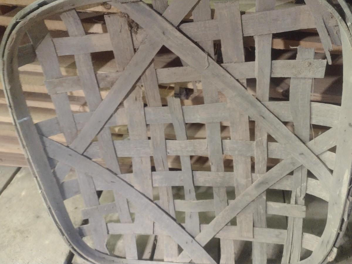 Vintage Authentic Splint Wood Tobacco Leaf Market Basket (E). Sizes of each basket will vary. The baskets are all in used condition and will have broken slats, missing pieces, stains, etc. Sold as is.
