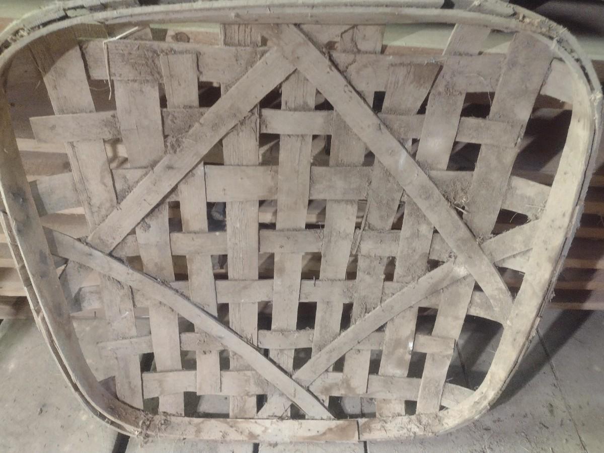 Vintage Authentic Splint Wood Tobacco Leaf Market Basket (M). Sizes of each basket will vary. The baskets are all in used condition and will have broken slats, missing pieces, stains, etc. Sold as is.