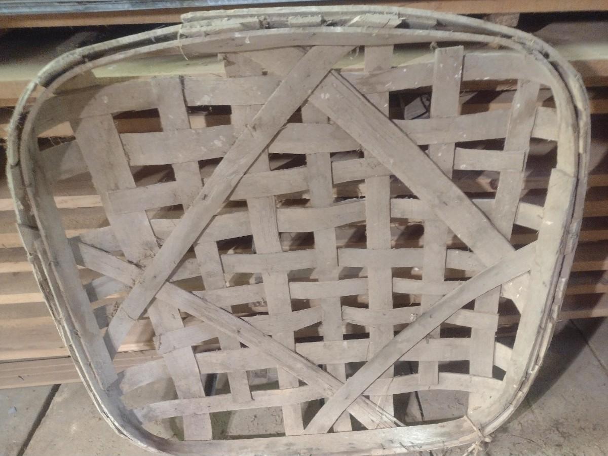 Vintage Authentic Splint Wood Tobacco Leaf Market Basket (R). Sizes of each basket will vary. The baskets are all in used condition and will have broken slats, missing pieces, stains, etc. Sold as is.