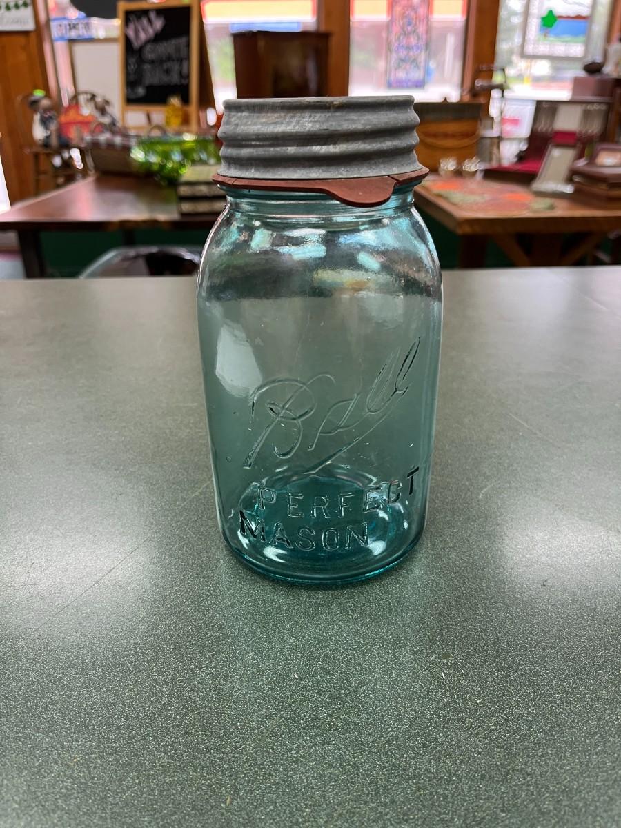 Vintage Blue Ball Round Qt Mason Jar #6 with zinc Lid