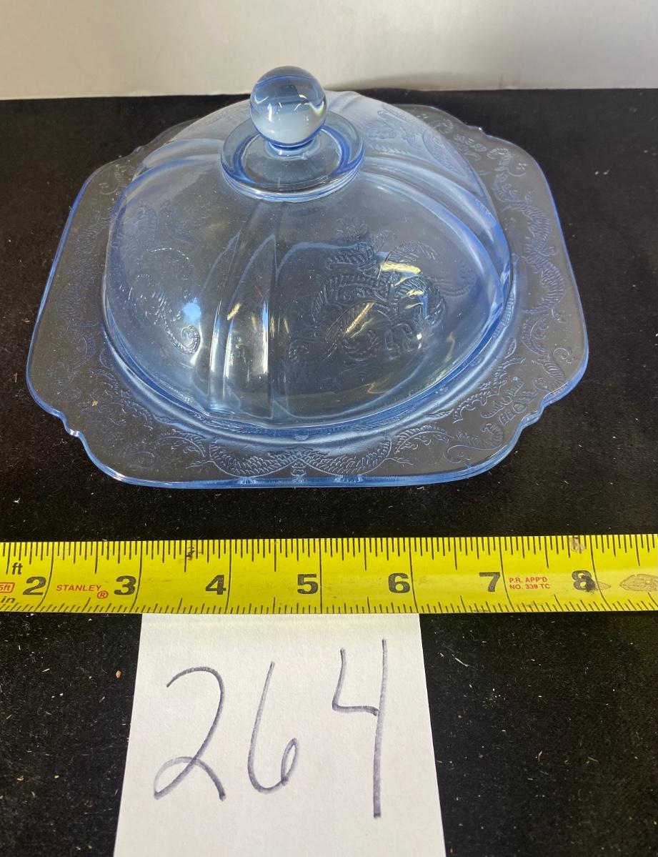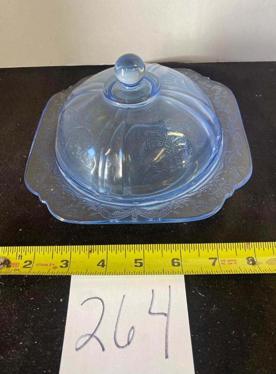 Vintage Blue Depression Indiana Butter Dish and Cover