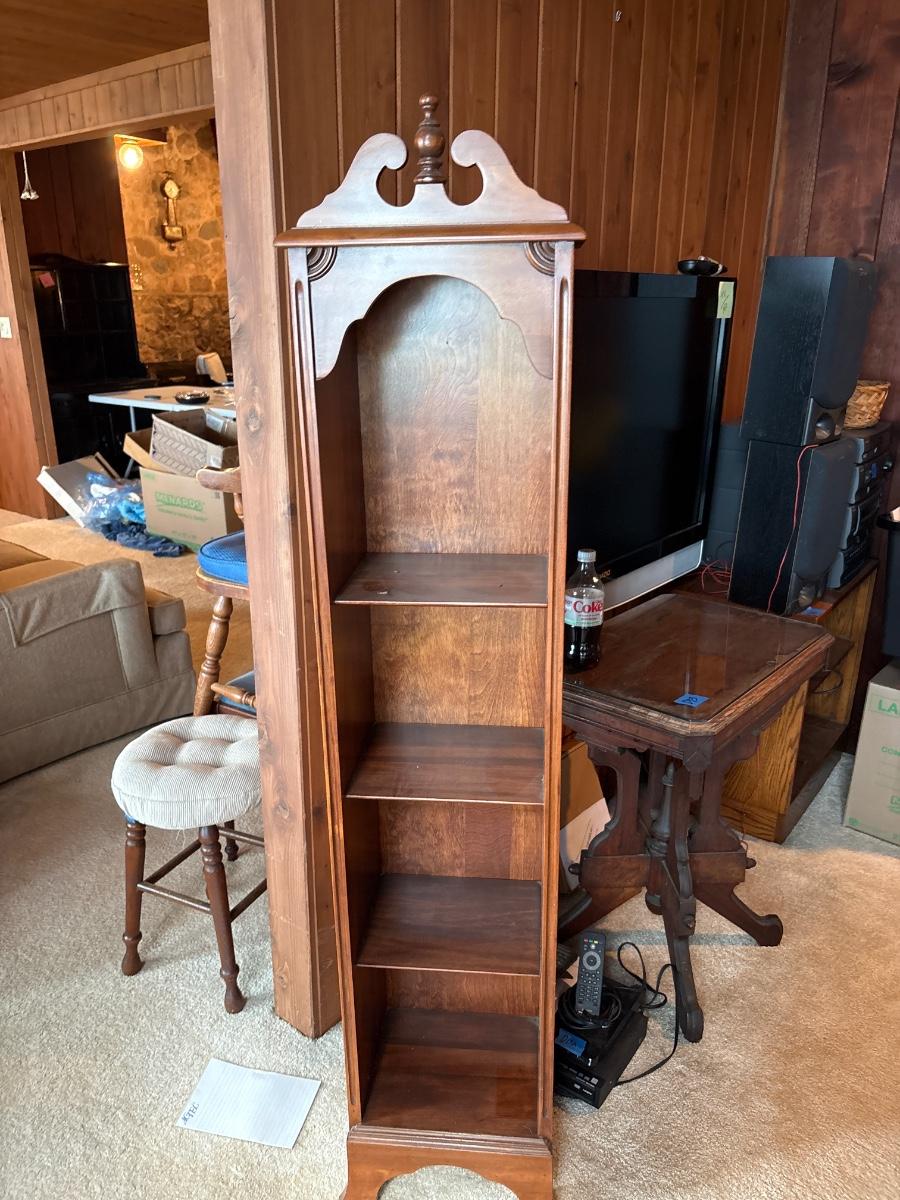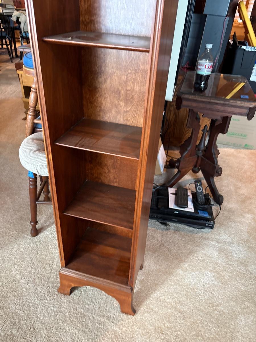 Beautiful condition. Shelves are stationary.22x9.5x61.