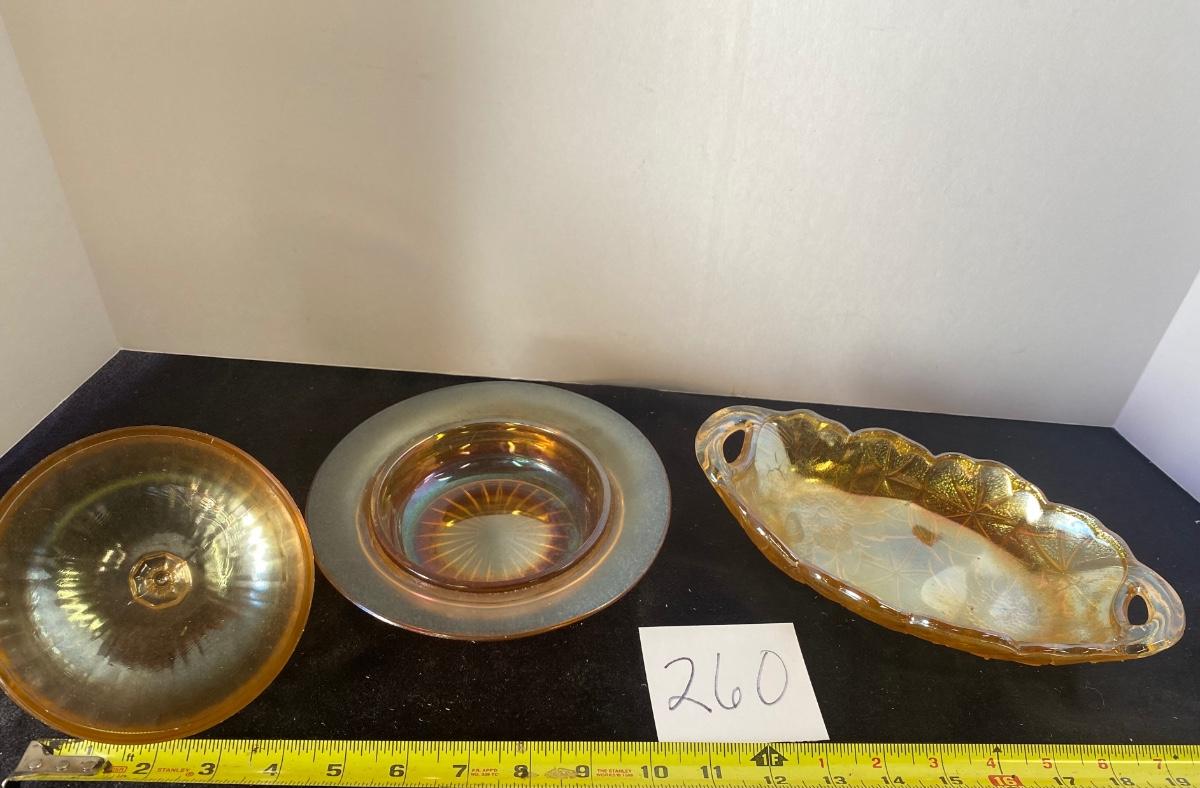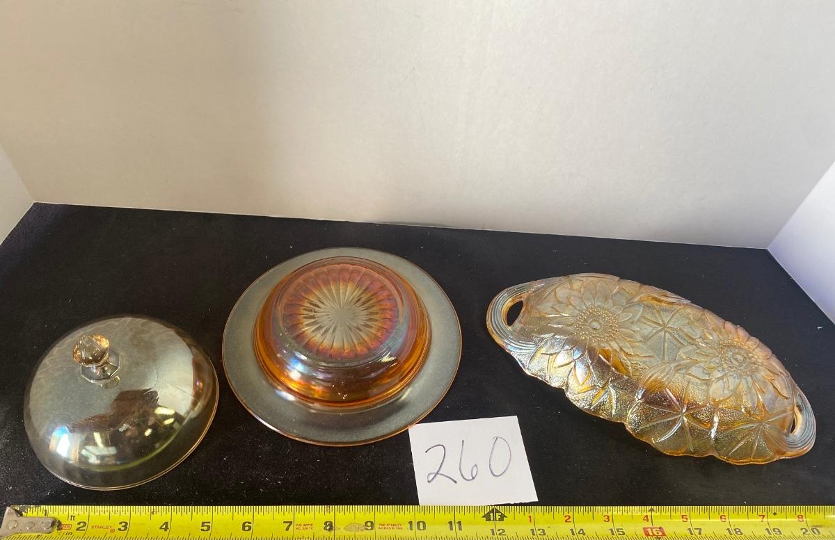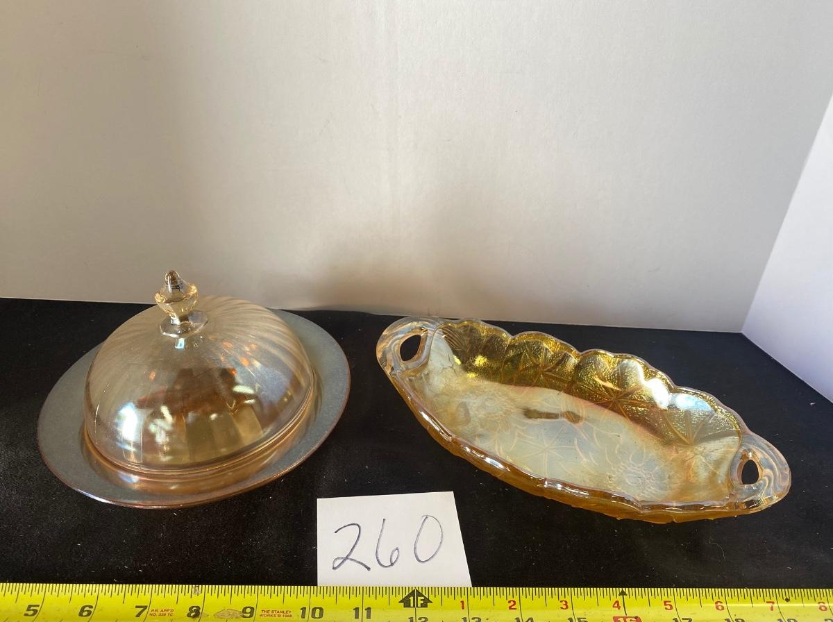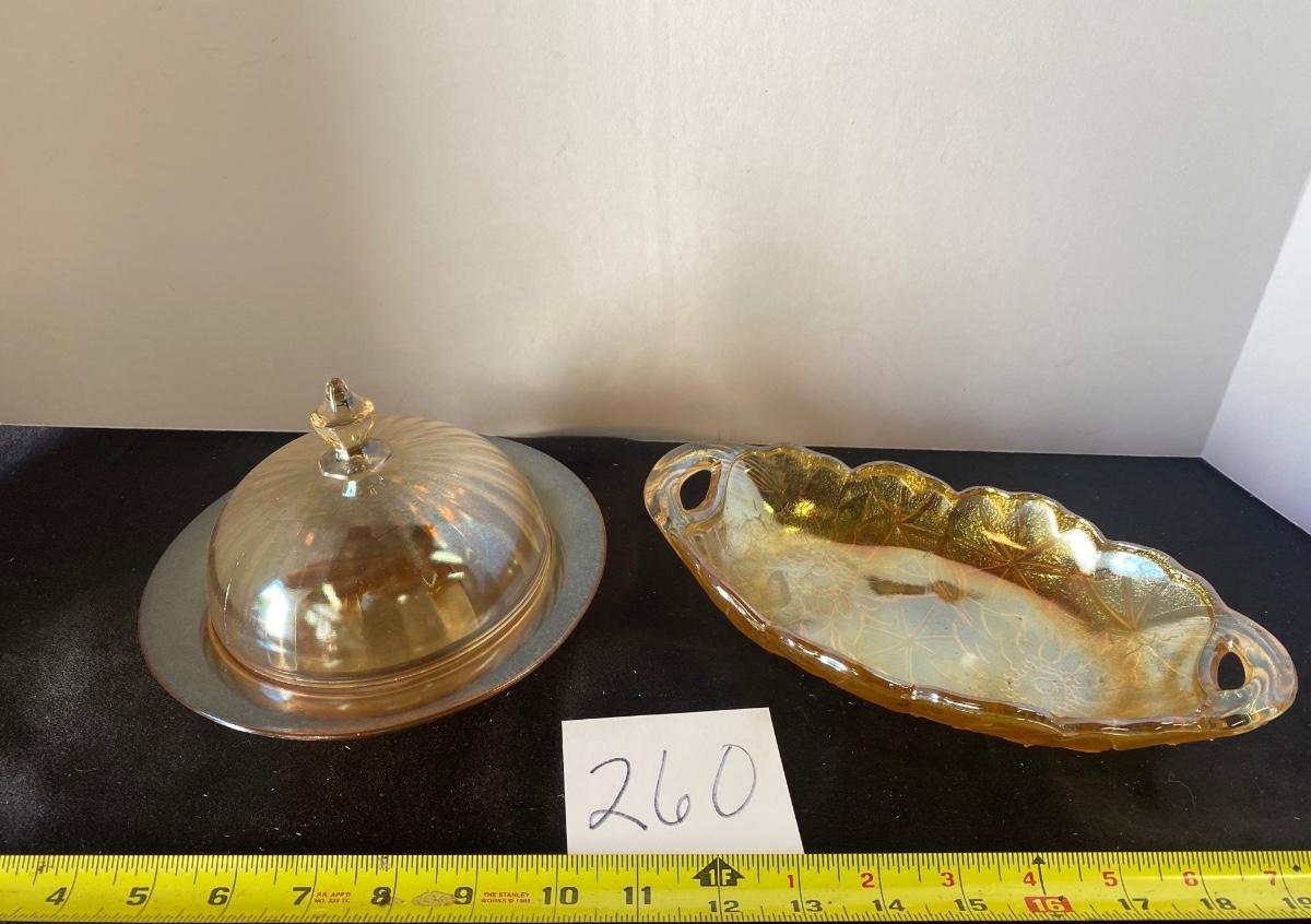 Vintage Carnival Glass Butter Dish and Candy Dish