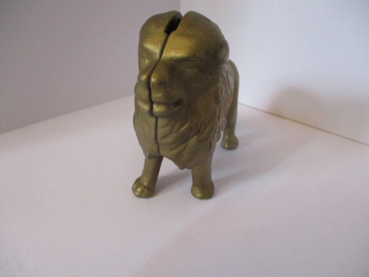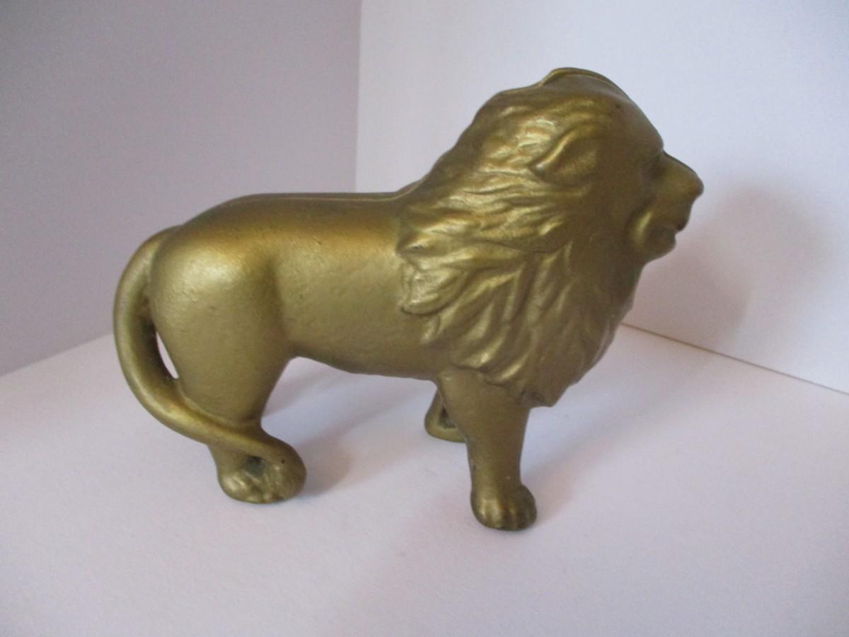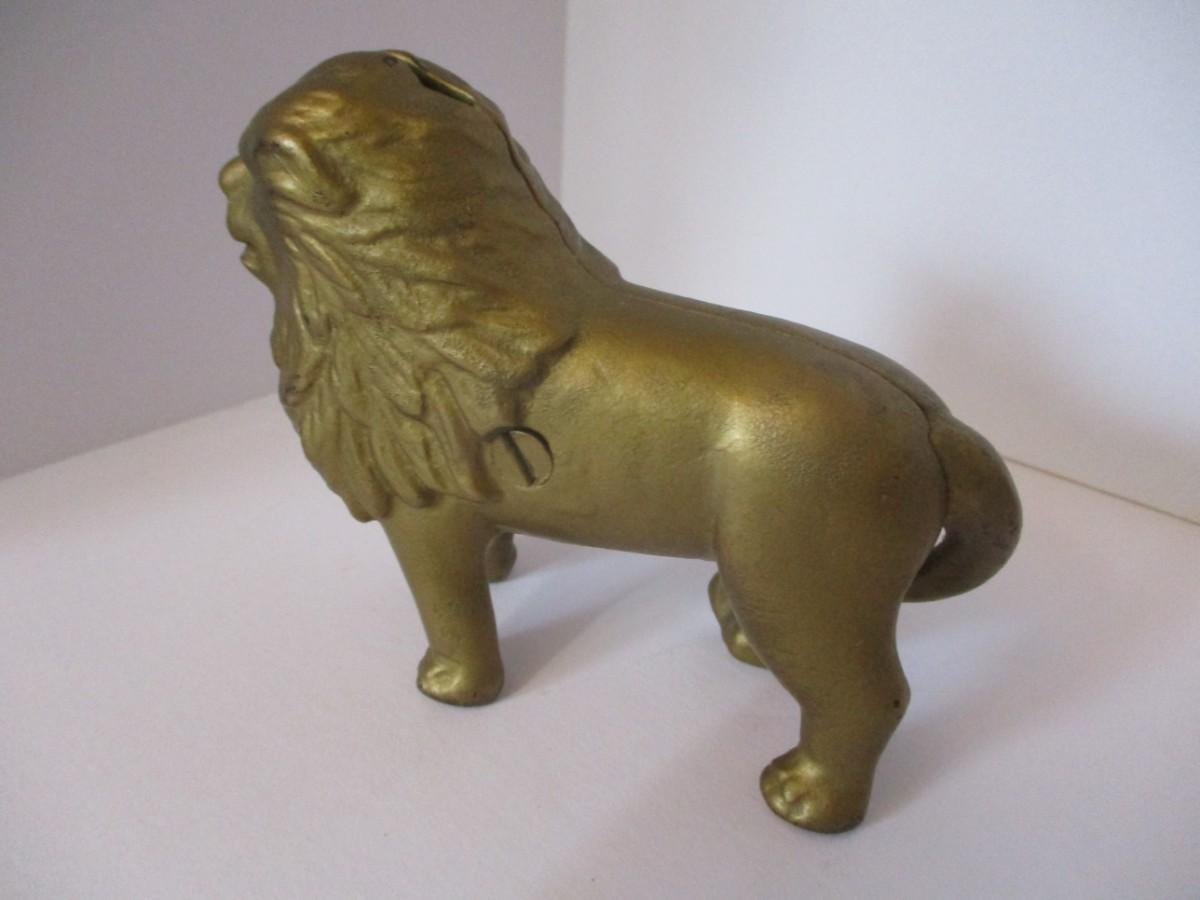 Vintage Cast Iron Gold Toned Lion Bank